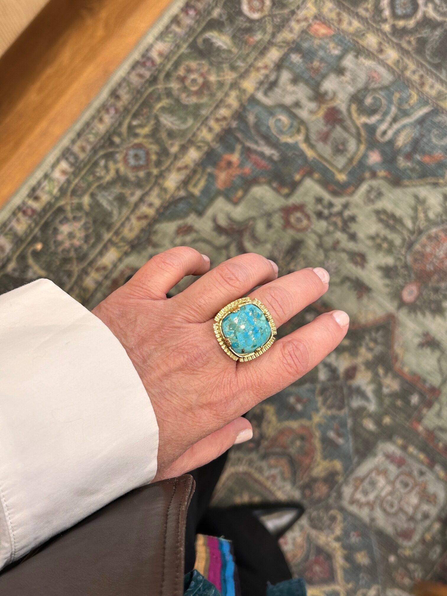 La bague turquoise dorée s’adresse à une femme qui aime affirmer son style avec finesse. Elle évoque les voyages, les paysages ensoleillés et une certaine liberté. Enfin, elle se distingue par son équilibre entre modernité et inspiration artisanale.