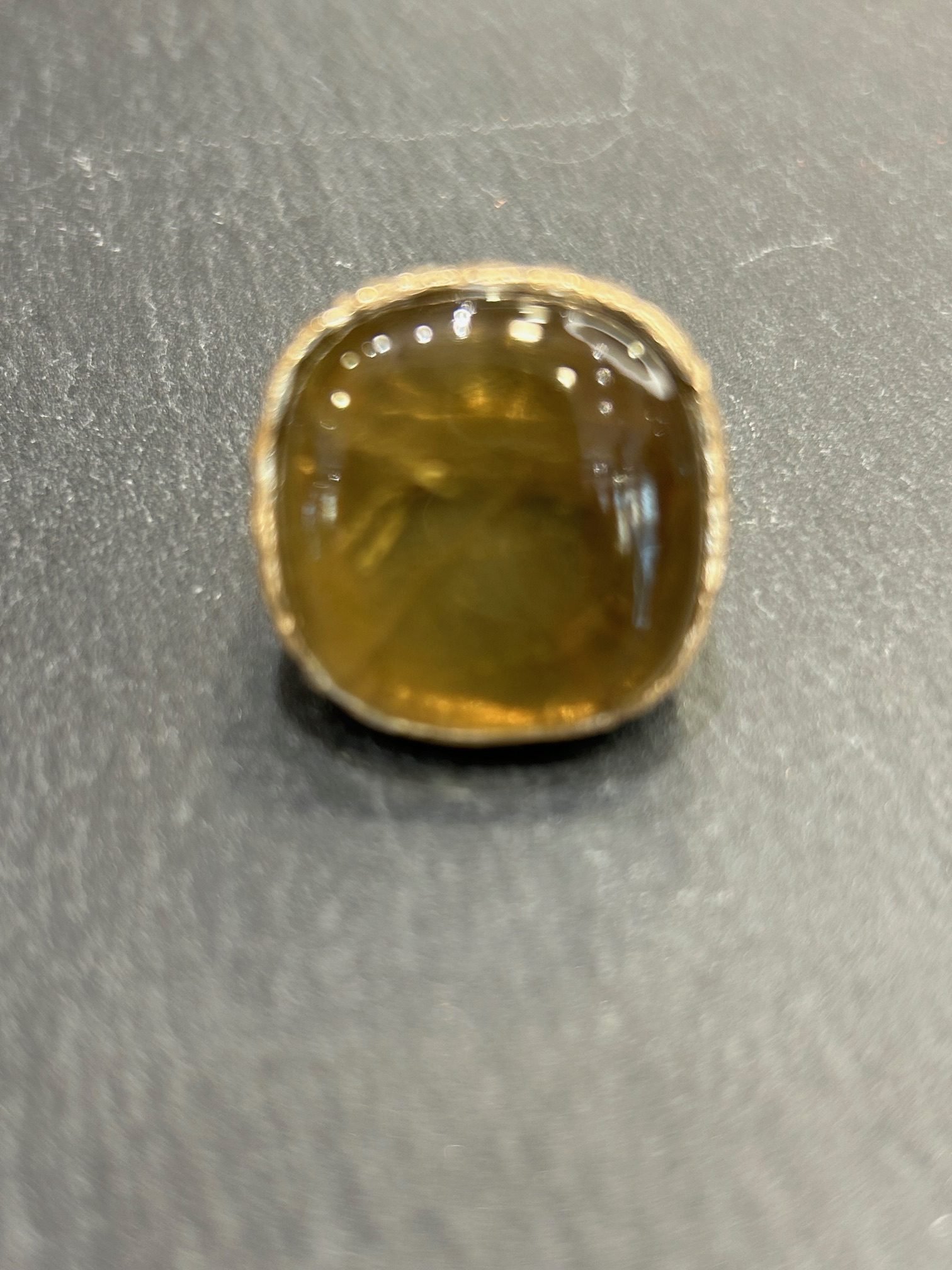 Bague en argent plaquée or ornée d’ un cabochon en quartz fumé.