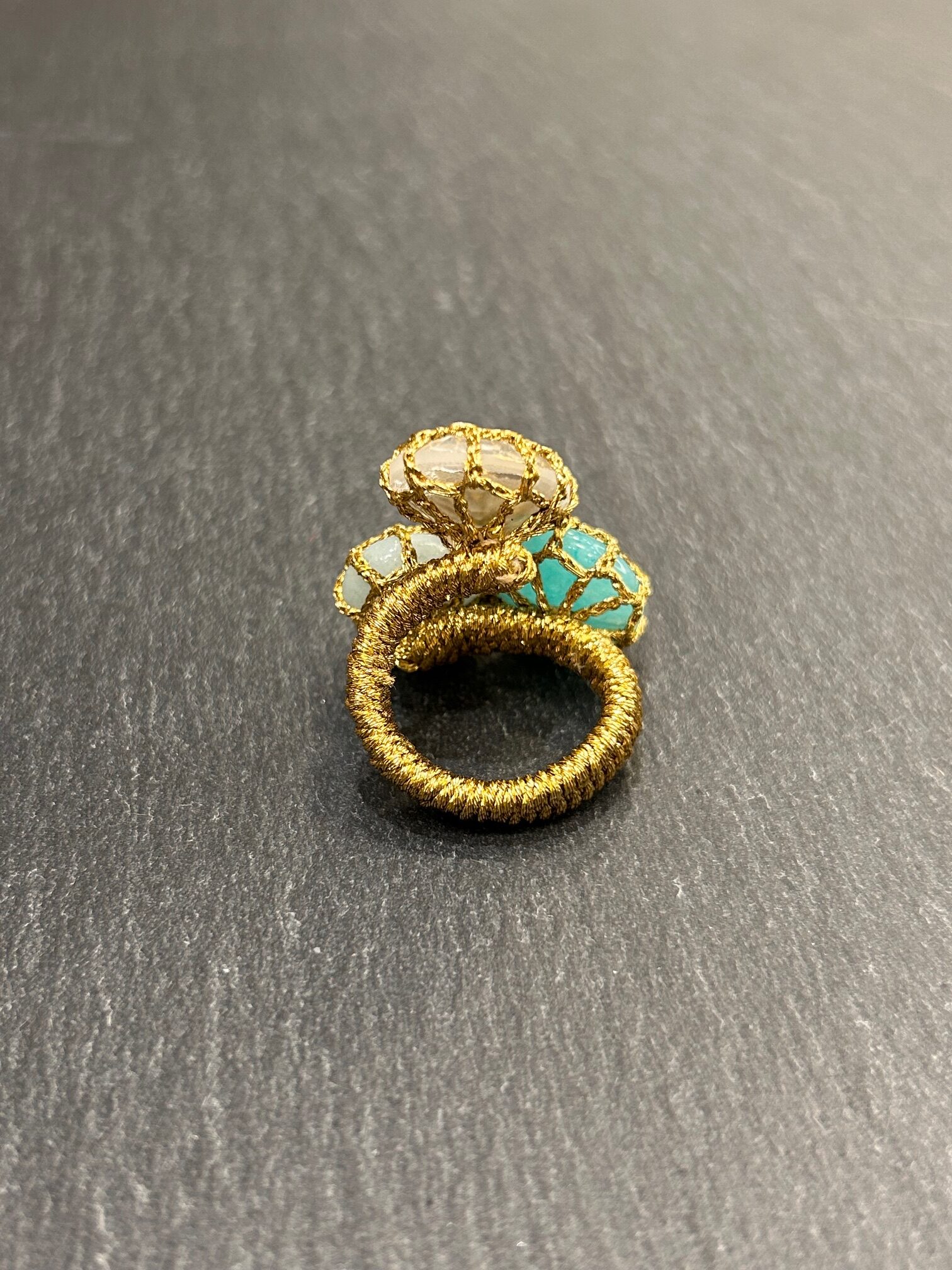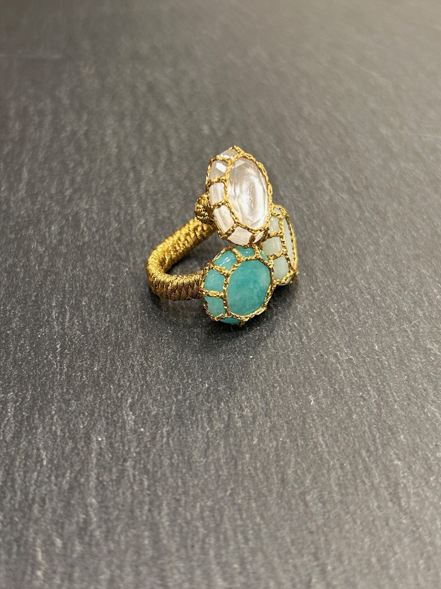 La bague artisanale luxe ITZA Lagon incarne un savoir-faire délicat et une élégance rare. Dès le premier regard, elle capte la lumière et sublime la main avec finesse. Ainsi, ses fils à broder lurex scintillent subtilement et mettent en valeur chaque détail.