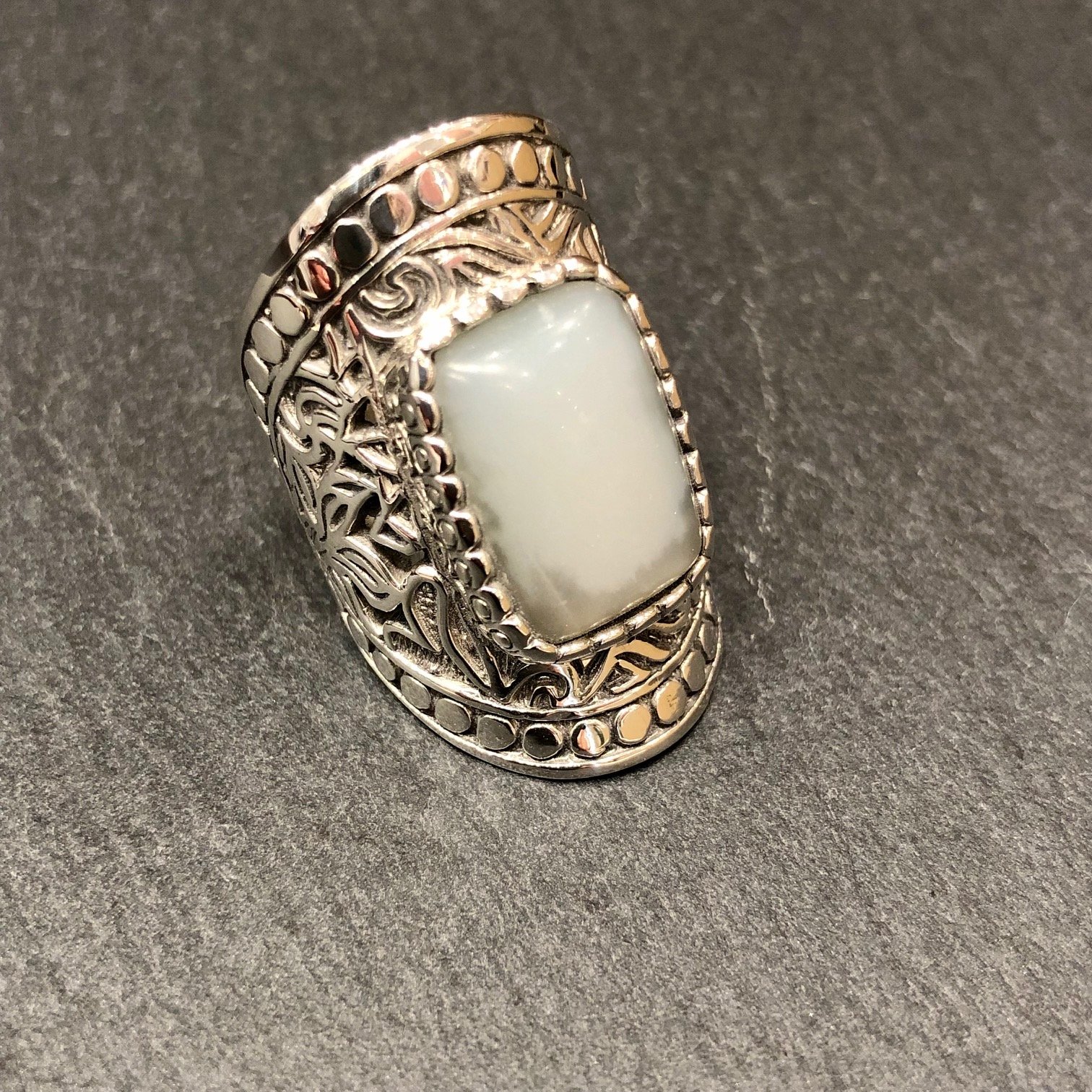 Bague en argent 925 sertie d une Pierre de Lune .