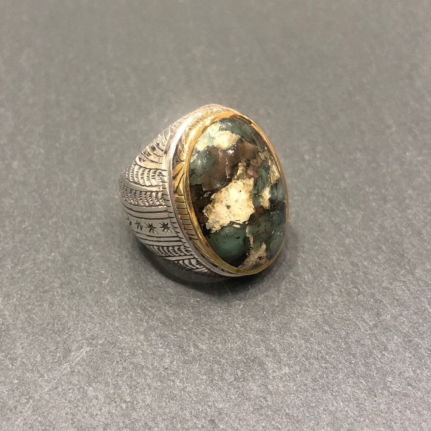 Bague en argent 925 sertie d une Emeraude, tour serti cuivre.