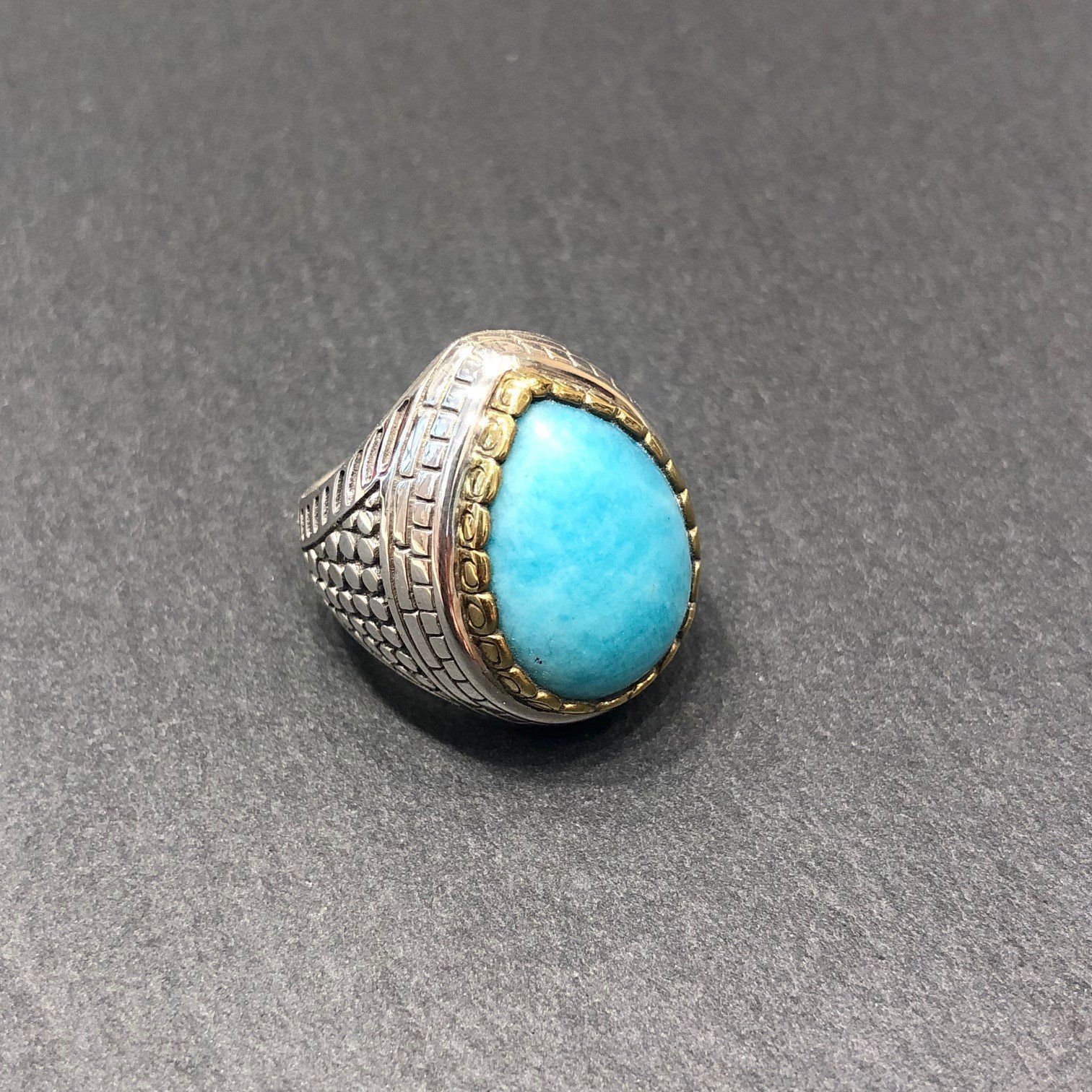 Bague en argent 925 sertie d une Amazonite, tour serti cuivre.