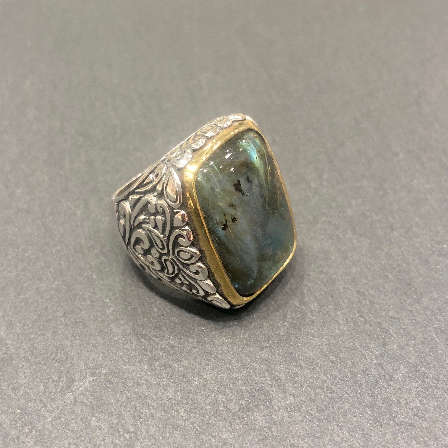 Bague en argent 925 sertie d une Labradorite, tour serti cuivre.