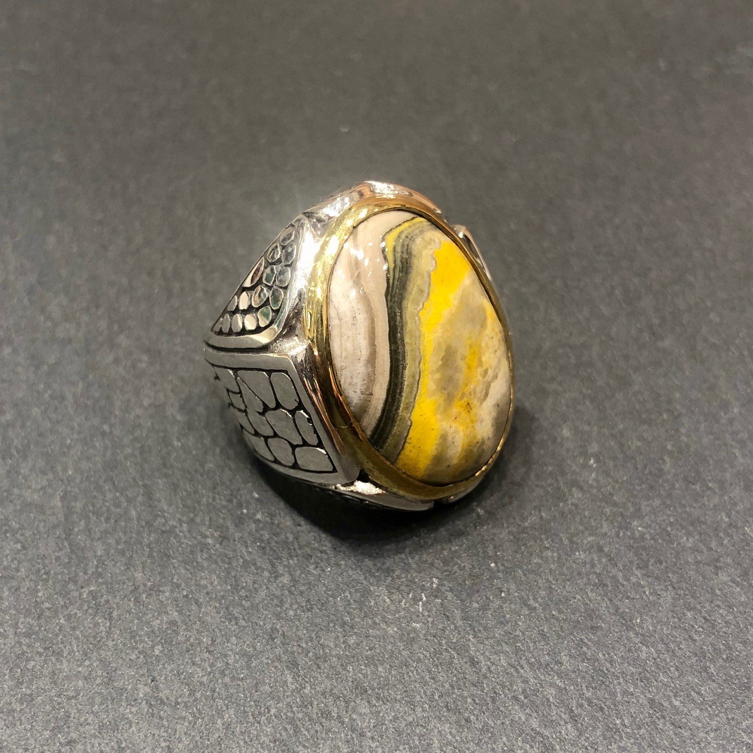 Bague en argent 925 sertie d une Jaspe Bourbon, tour serti cuivre.