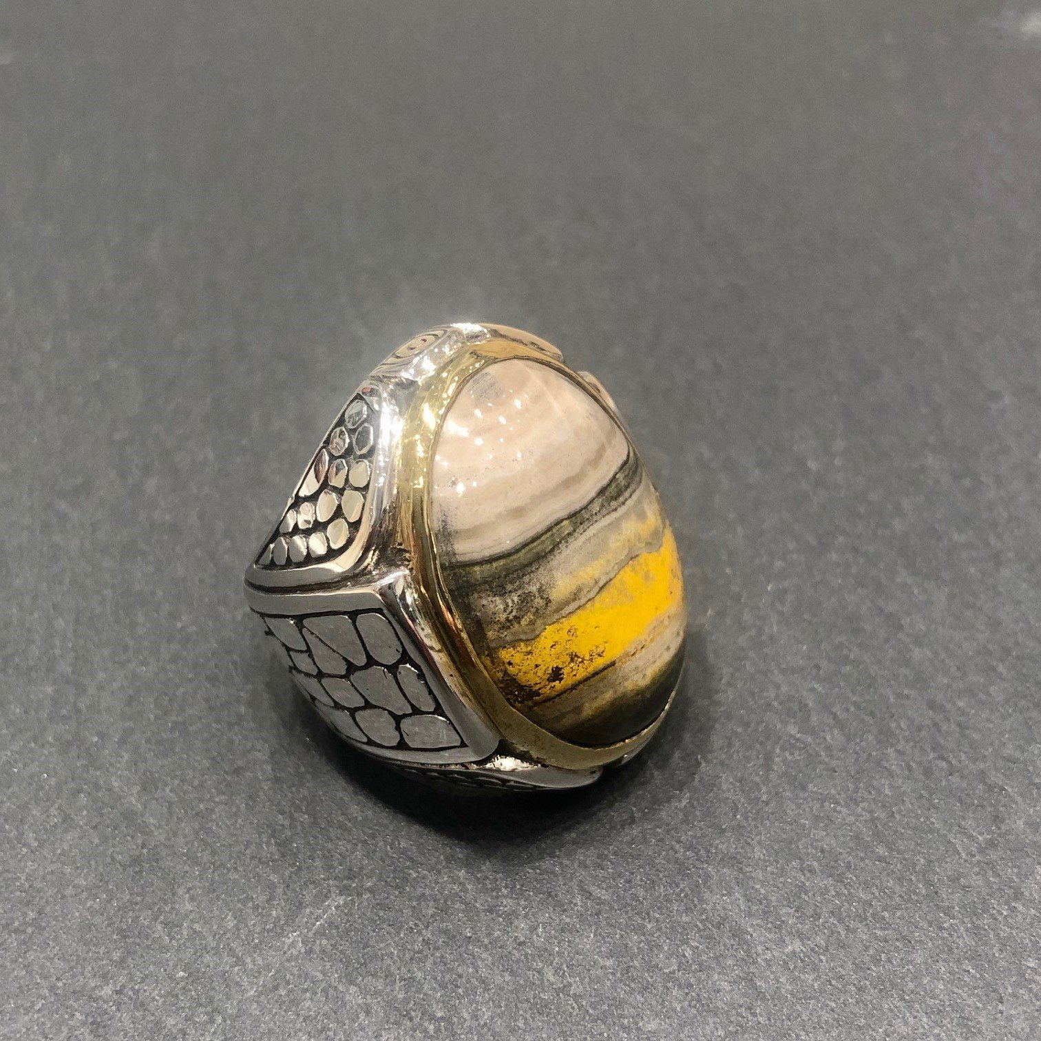 Bague en argent 925 sertie d une Jaspe Bourbon, tour serti cuivre.