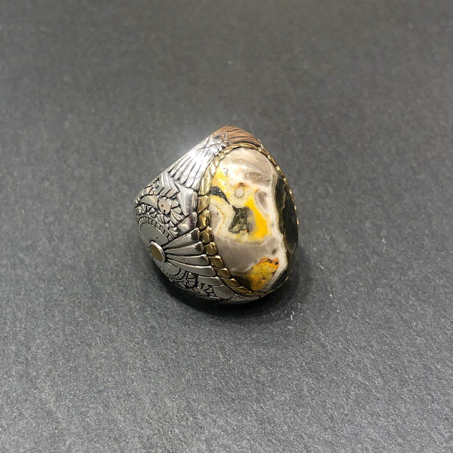 Bague en argent 925 sertie d une Jaspe Bourbon, tour serti cuivre.