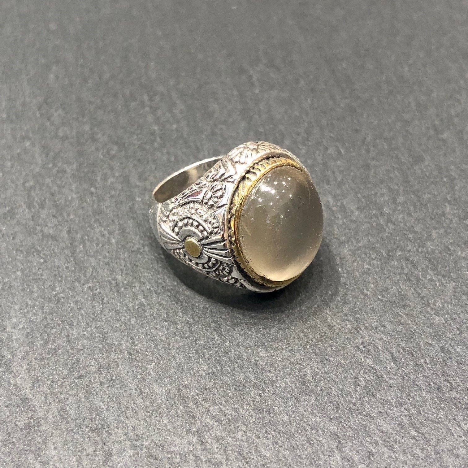 Bague en argent 925 sertie d une Pierre de Lune, tour serti cuivre.