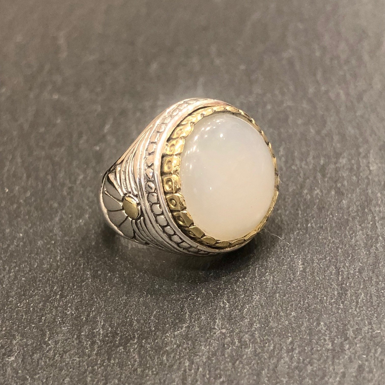 Bague en argent 925, sertie d une pierre de lune blanche tour cuivre.
