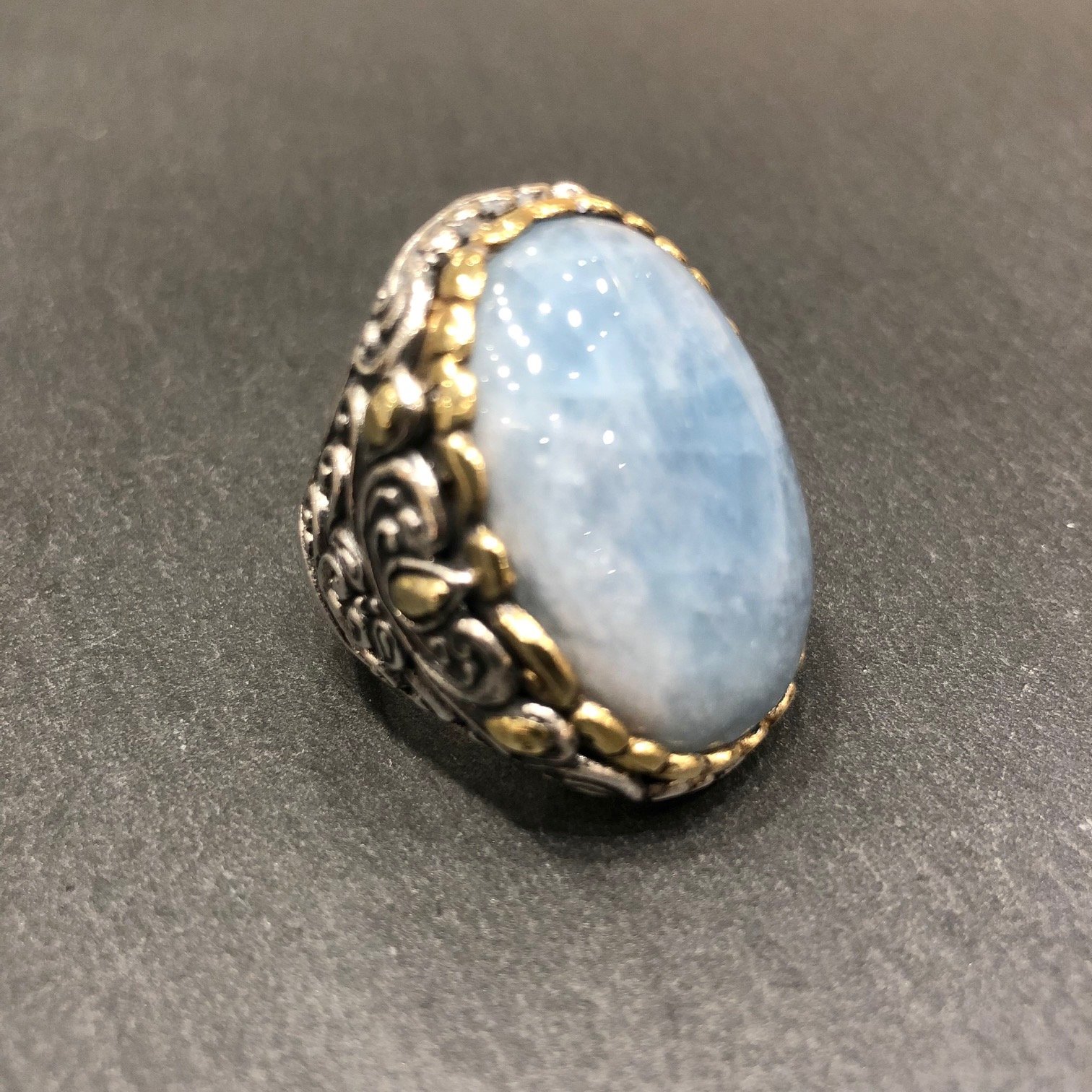 Bague en argent 925 sertie d une aigue marine, tour serti cuivre.