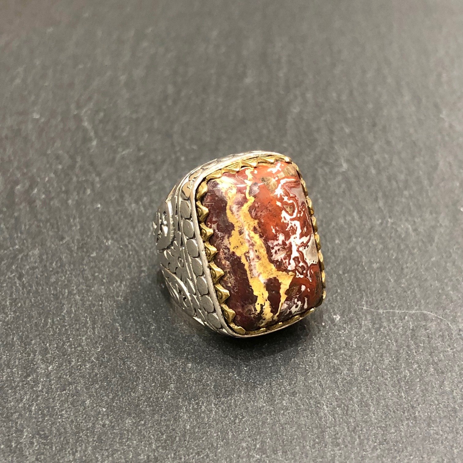 Bague en argent 925,sertie d’une laguna, tour cuivre .