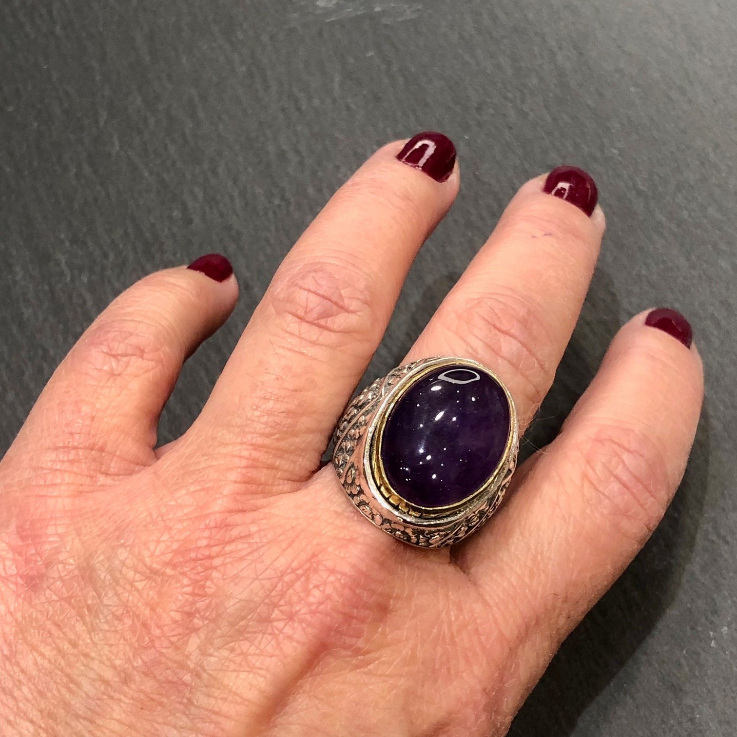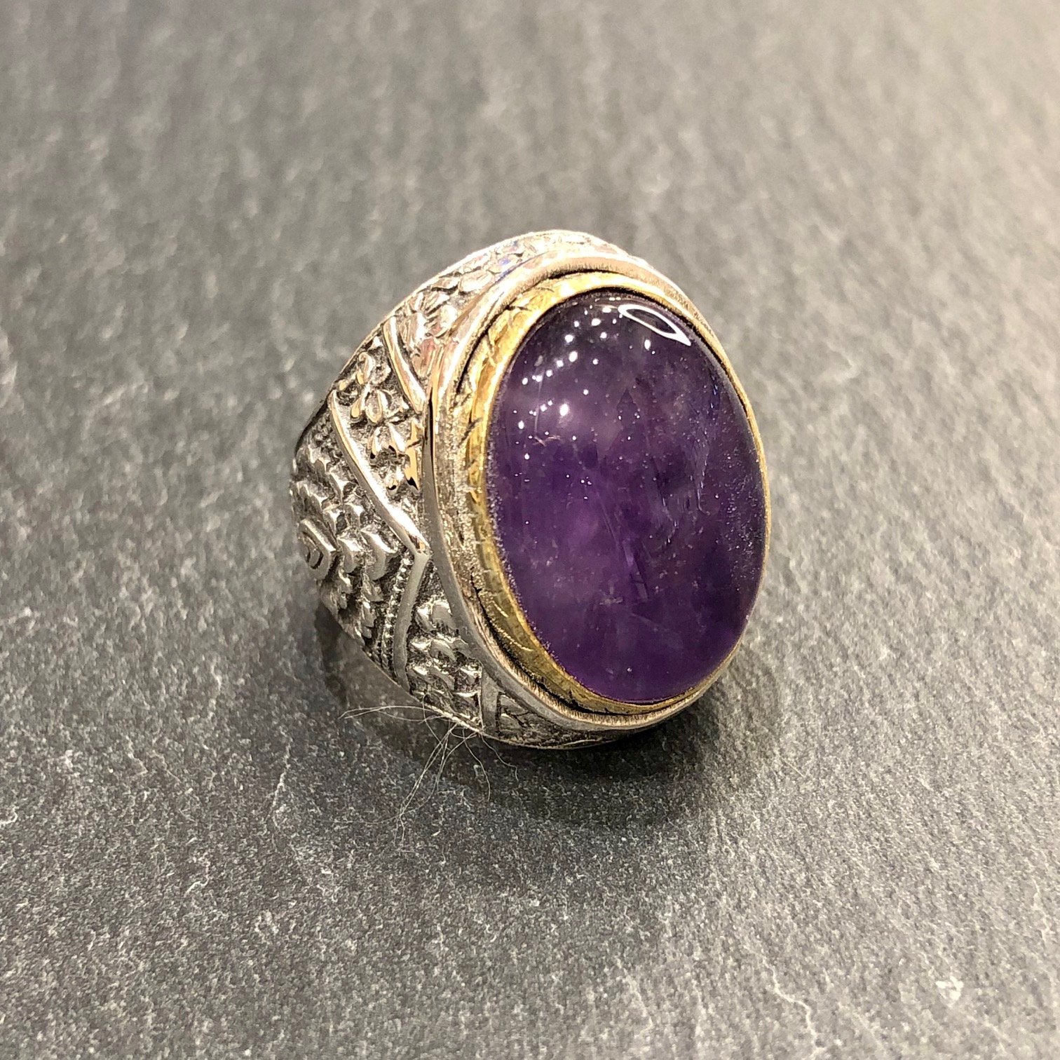 Bague en argent 925 sertie d’une améthyste , sertie laiton.
