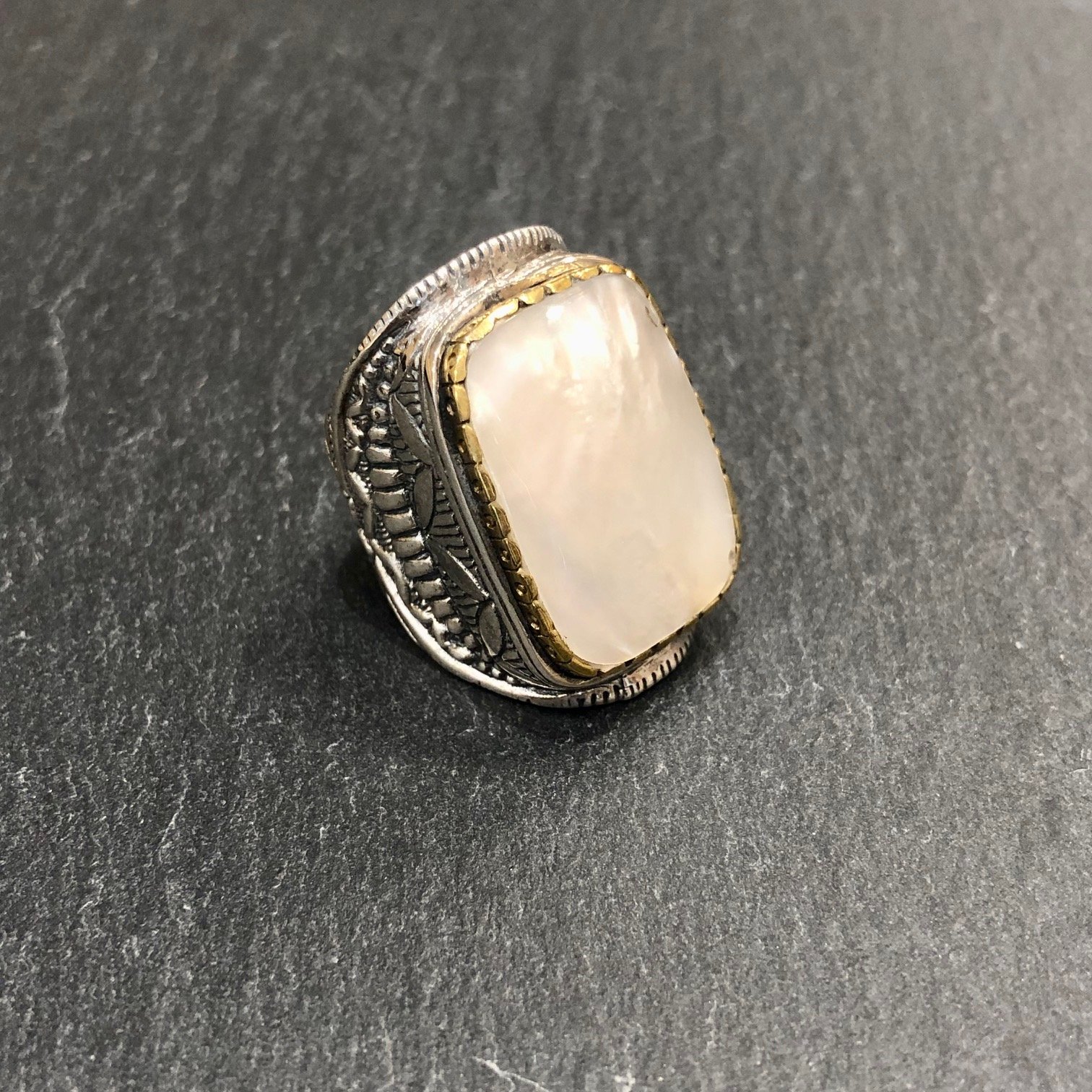 Bague en argent 925 sertie d’une nacre , sertie laiton.