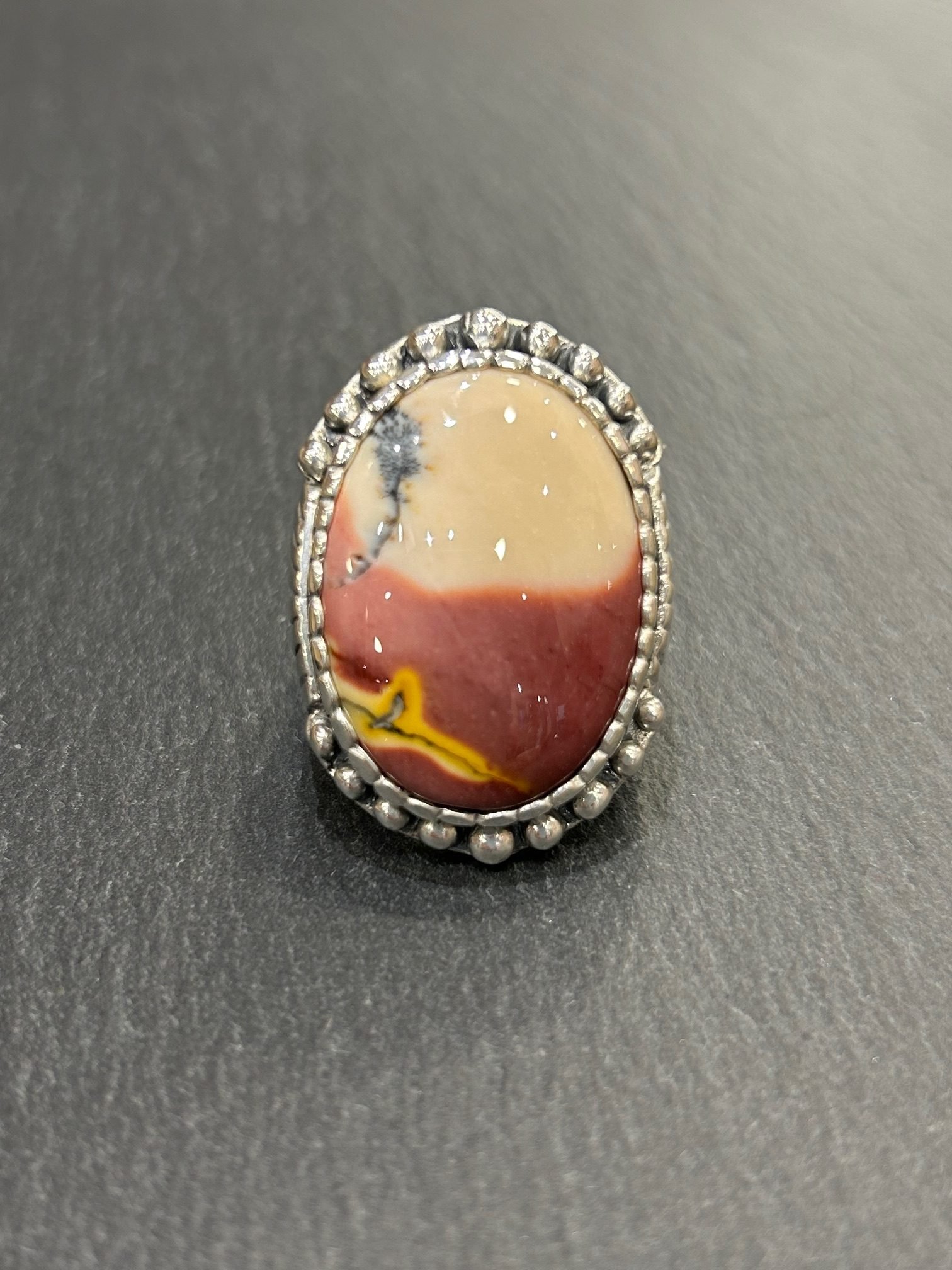 Bague en argent 925 sertie d’une Mokaïte d’Australie.