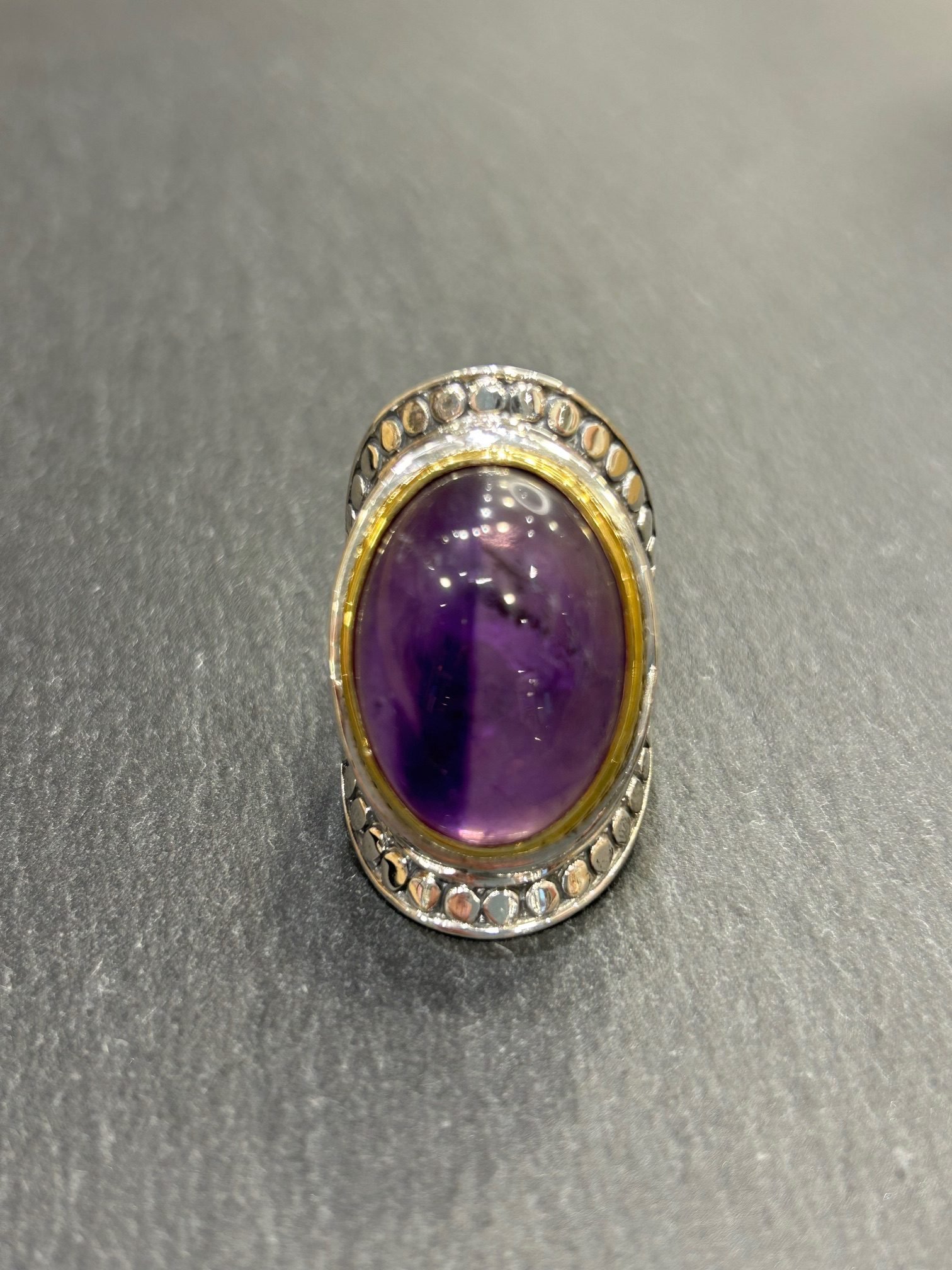 Bague en argent 925 sertie d’une améthyste du Brésil, sertie laiton.