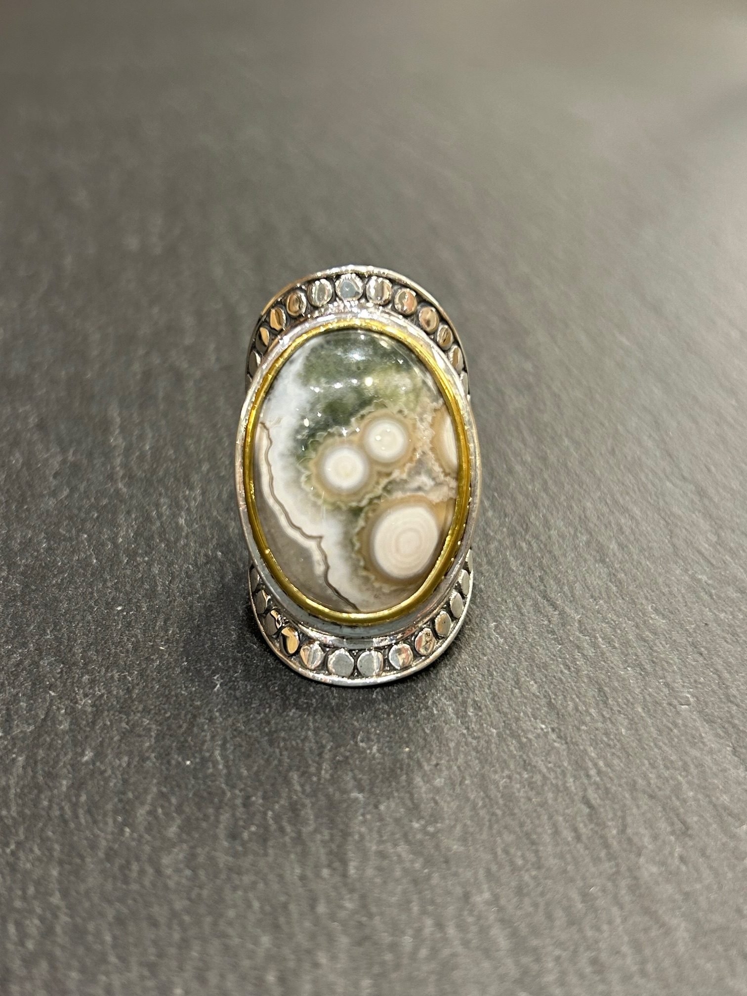 Bague en argent 925 sertie d’une Jaspe Océan de Madagascar, sertie laiton.