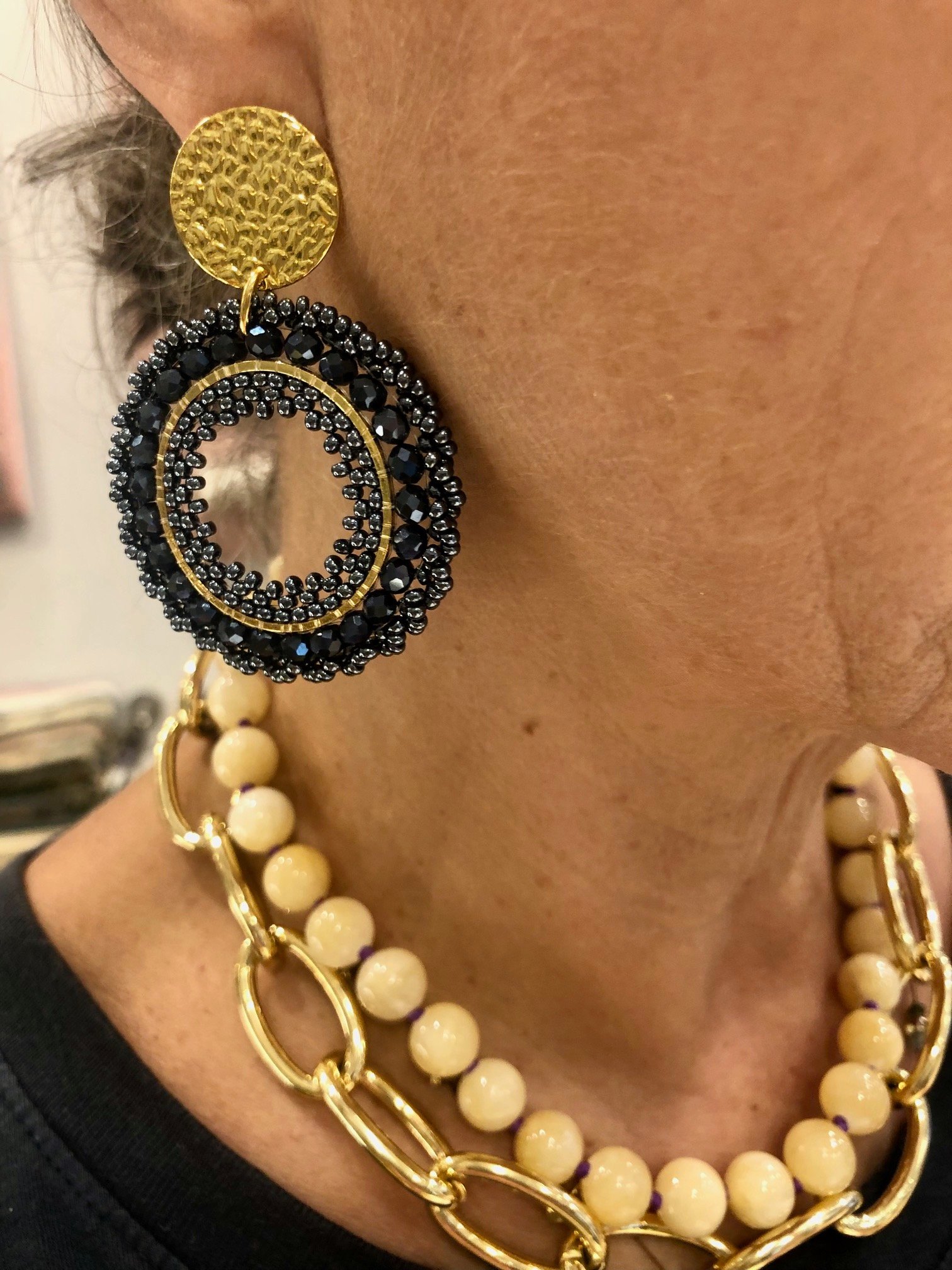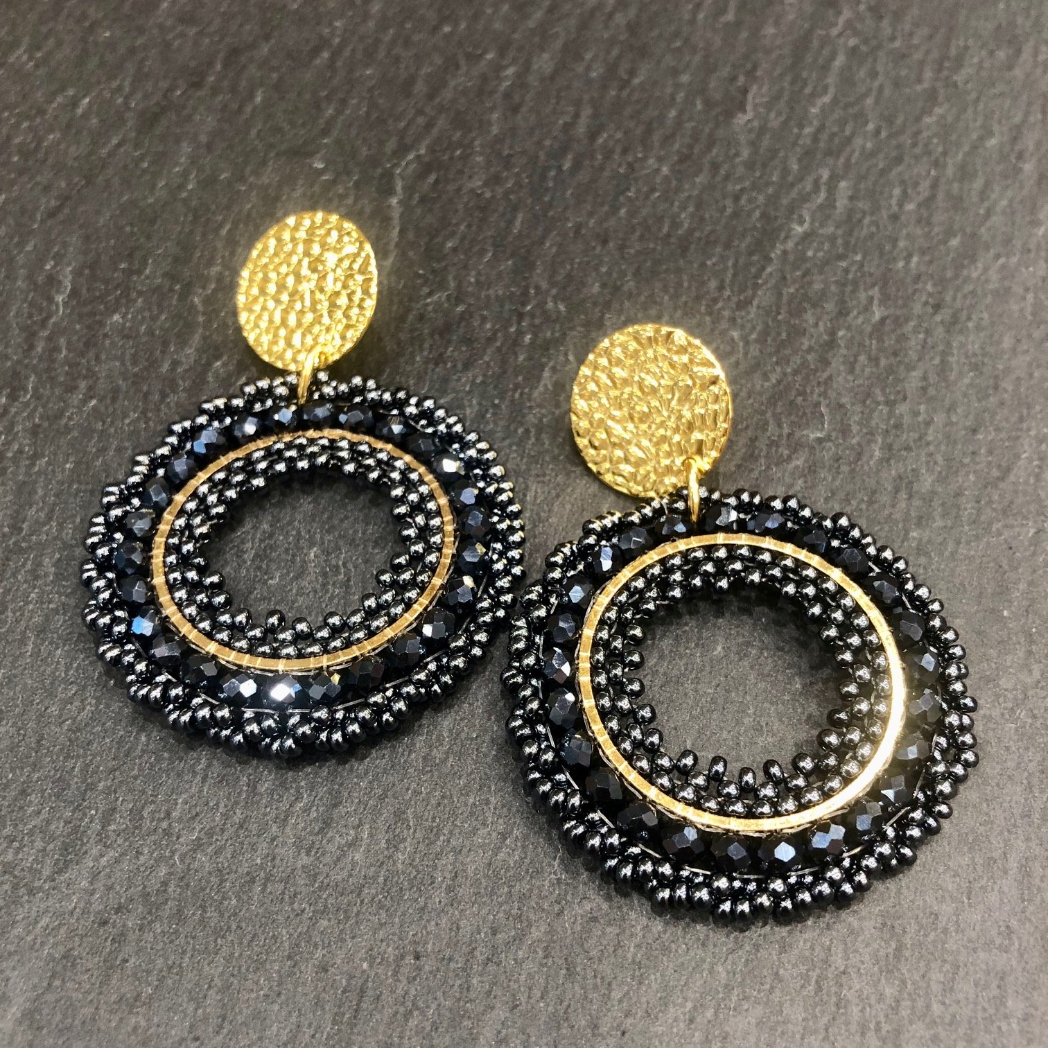 Boucles d’oreilles soit tige soit clip, composées d’un assemblage de perles et de cristaux tissés à la main