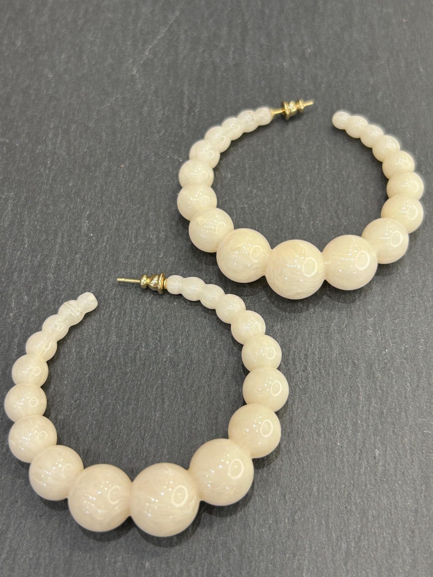 Boucles d oreilles créoles boules en acétate ivoire, tige doré à l or fin 24 carats.