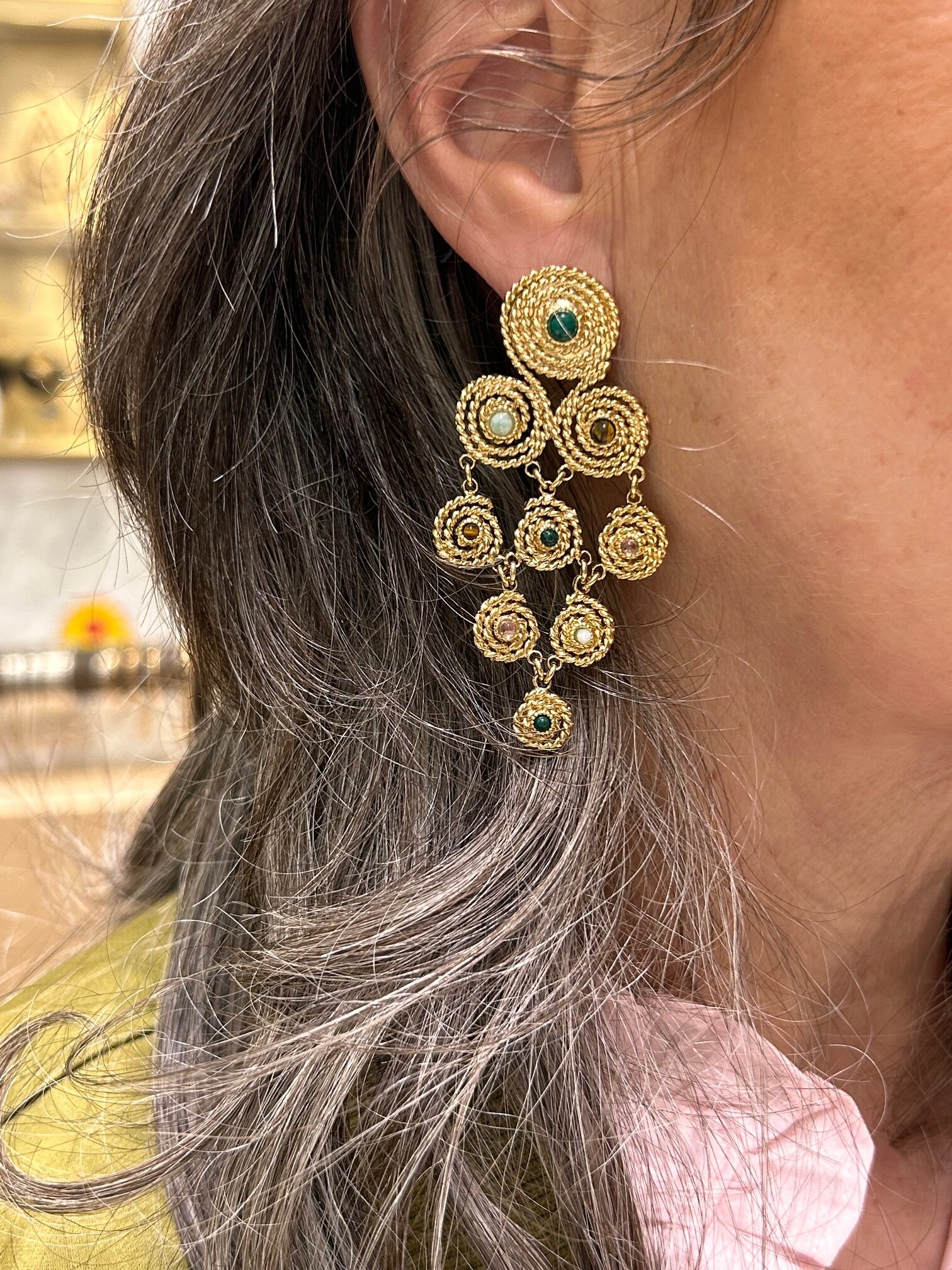 La collection MISTRAL s’inspire du mouvement et de la lumière. Les boucles d’oreilles pierres MISTRAL GM Mousse traduisent cet esprit avec intensité. Enfin, elles laissent une empreinte sensible, comme un souffle chaud sur la peau, précieux et inoubliable.