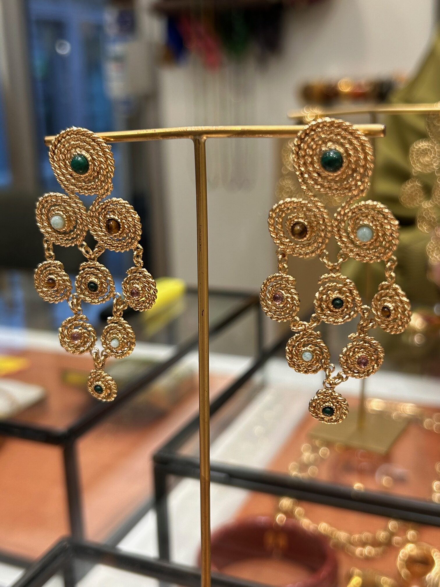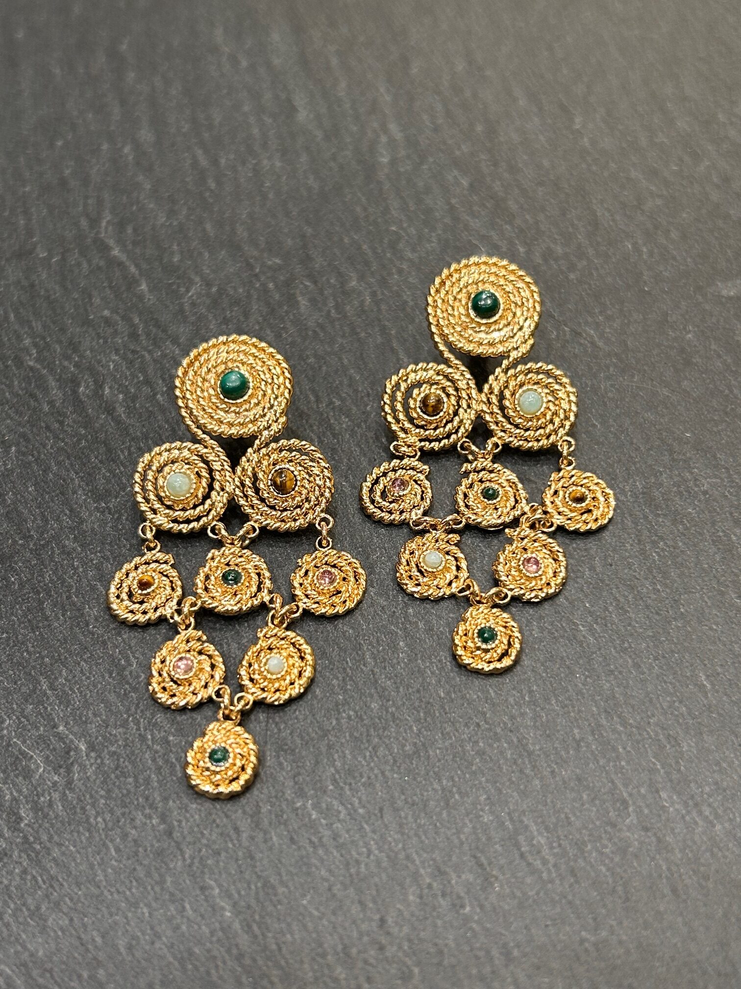La dorure à l’or fin diffuse une lumière chaude et enveloppante. Elle sublime la peau avec délicatesse. Les cabochons en pierres naturelles offrent des nuances profondes et vivantes. Ainsi, chaque pièce révèle un éclat unique. Le travail artisanal façonne chaque détail avec précision. Cependant, l’harmonie reste parfaite et maîtrisée.