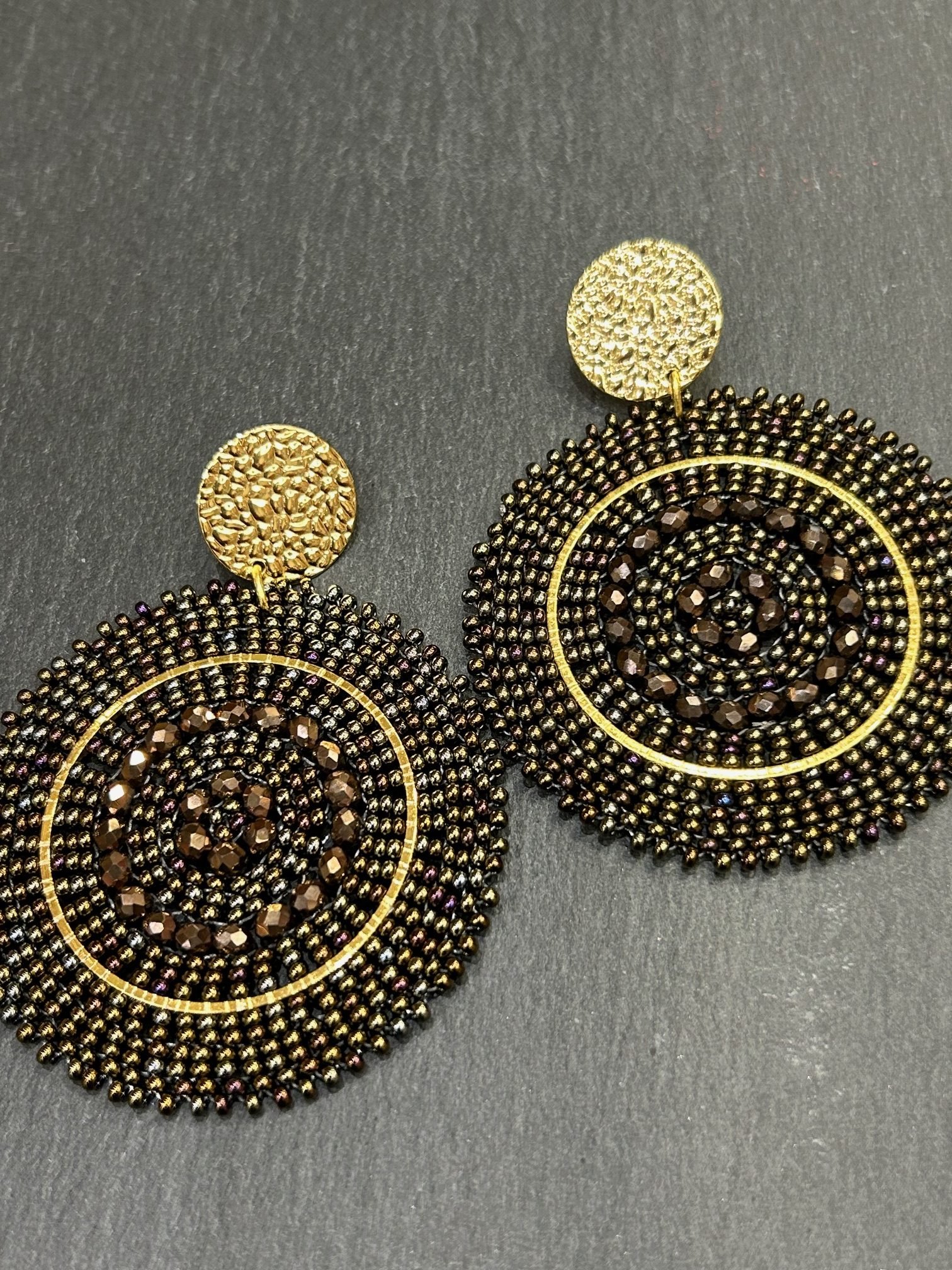 Boucles d’oreilles soit tige soit clip, composées d’un assemblage de perles et de cristaux tissés à la main