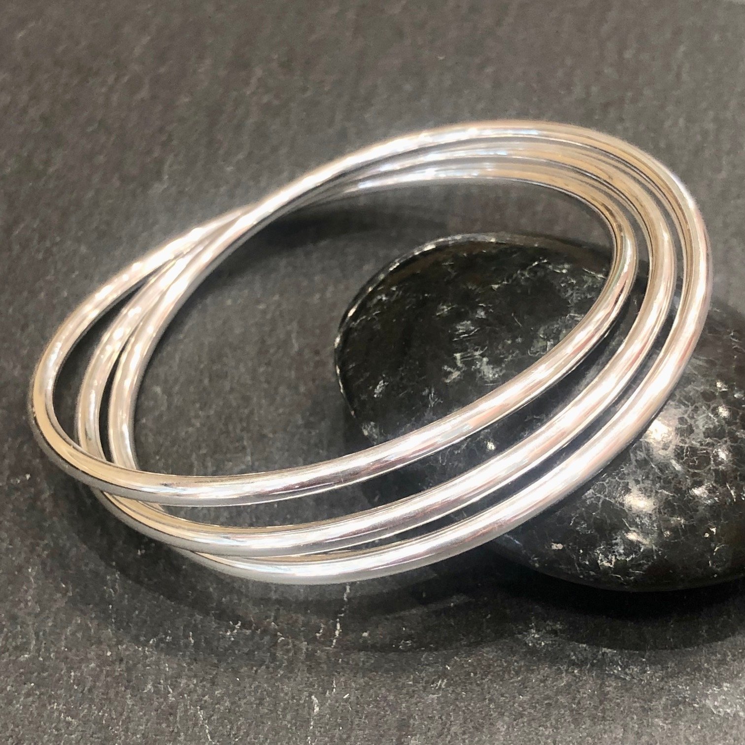 Bracelet 3 joncs ronds entrelacés en argent 925.