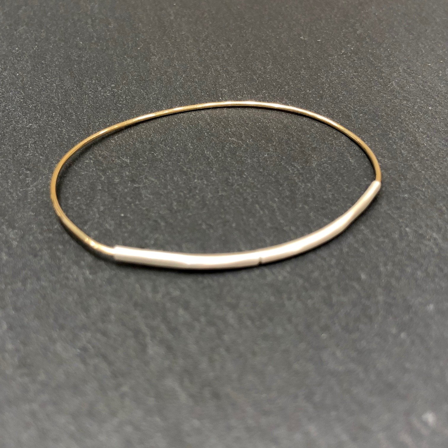 Bracelet jonc rigide fin, collection Sublime, en or, forme ovale, fermeture sur le devant par un tube en argent.