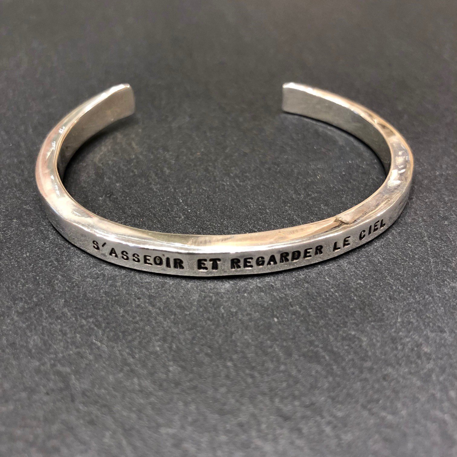 Bracelet ouvert en argent gravé : « S’asseoir et regarder le ciel »