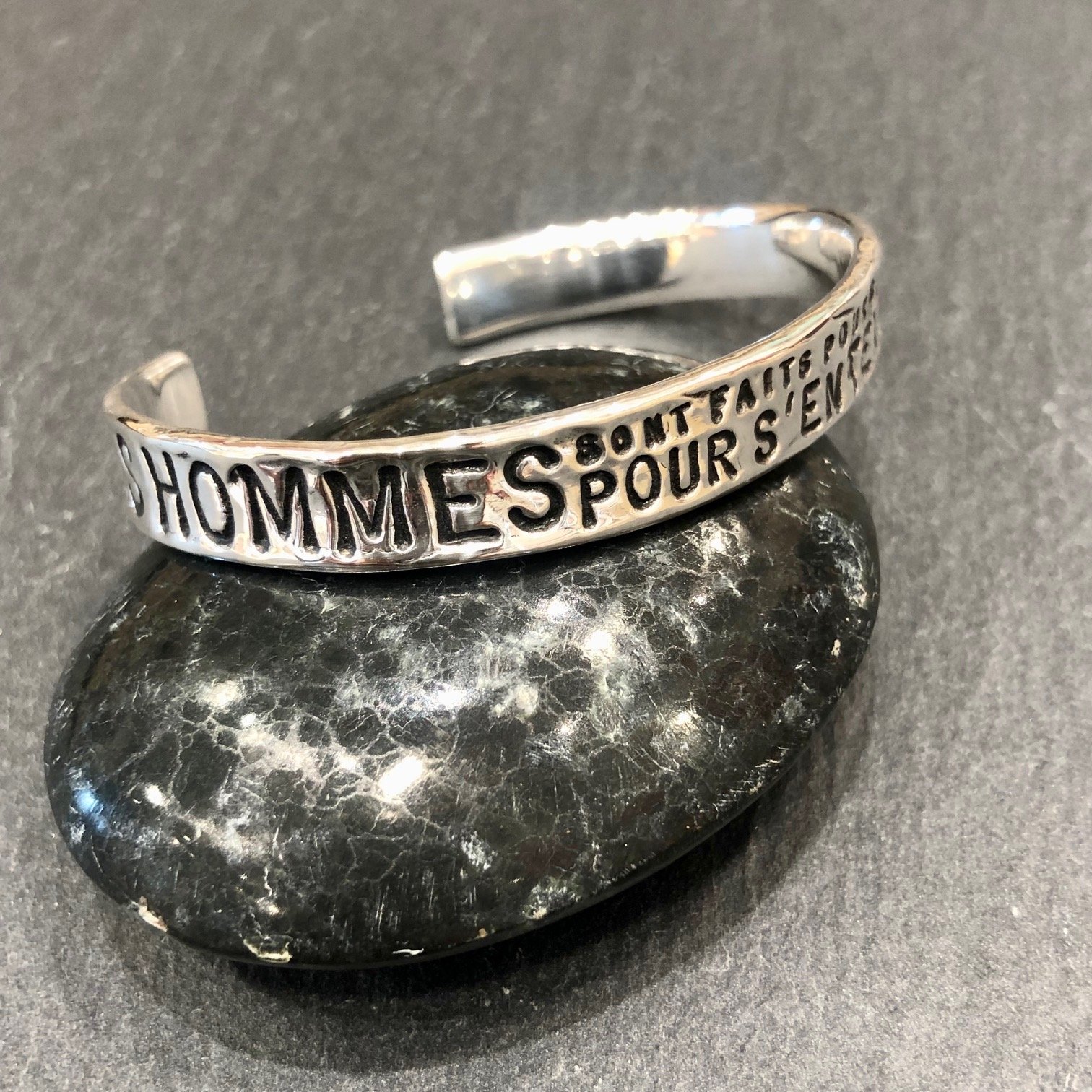 Bracelet ouvert en argent, gravé : »les hommes sont faits pour se comprendre, pour s’entendre, pour s’aimer ».