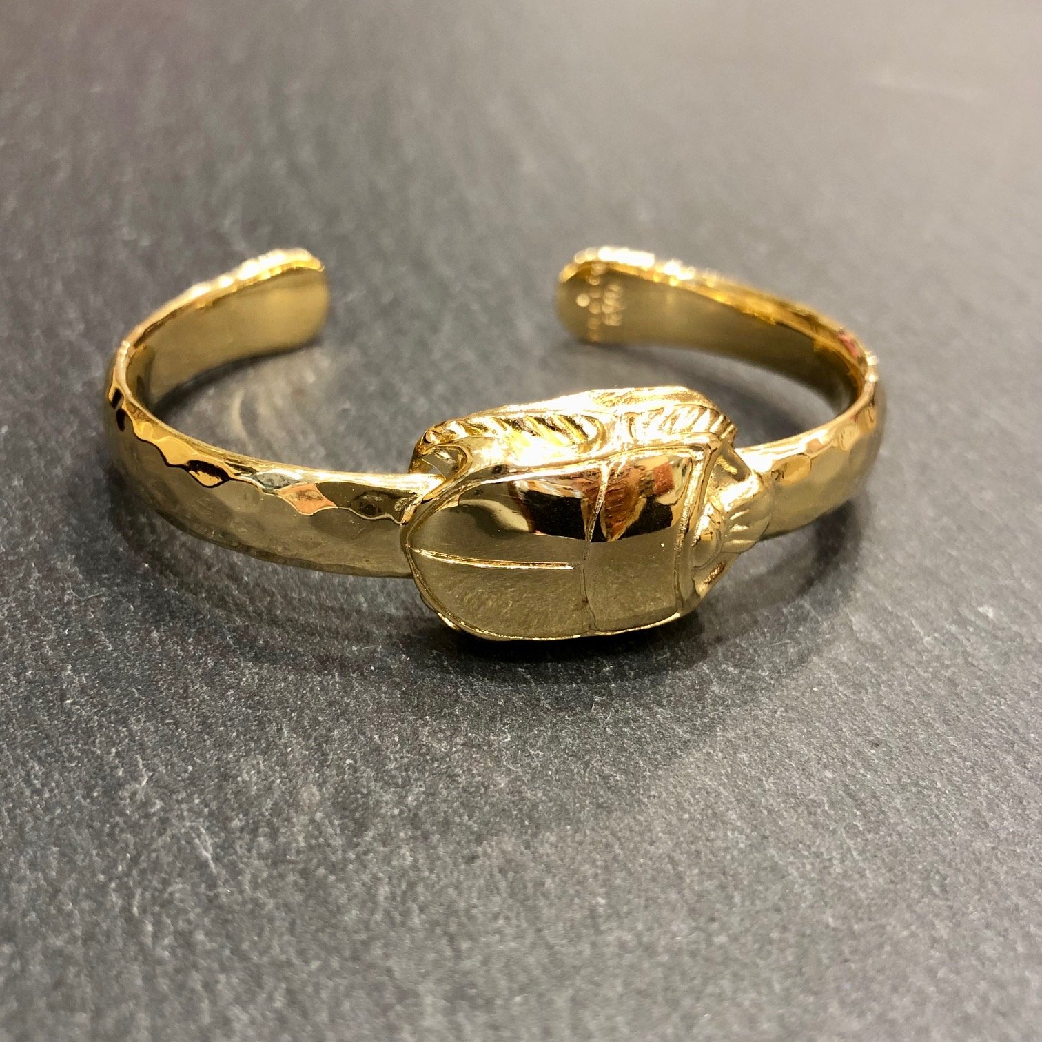 Bracelet jonc rigide ouvert doré à l’or fin orné d’un Scarabée central.