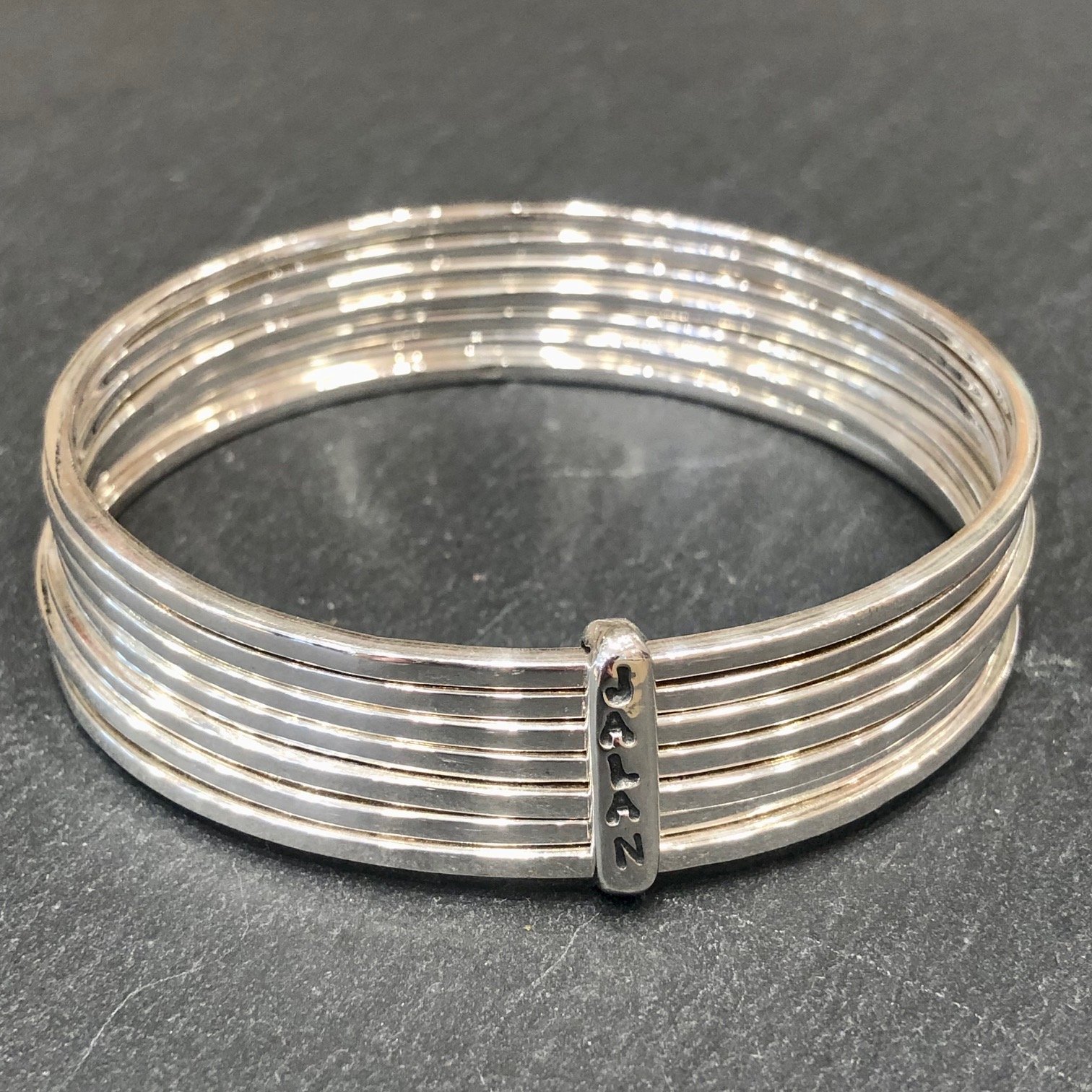 Bracelet semainier en argent 925 composé de 7 joncs rigides face carrée reliés avec une barrette estampillée Jalan .