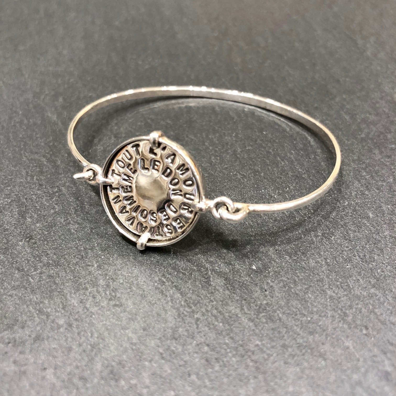 Bracelet fermé en argent gravé : « L’amour est avant tout le don de soi même » Taille M dimension intérieur 6 cm