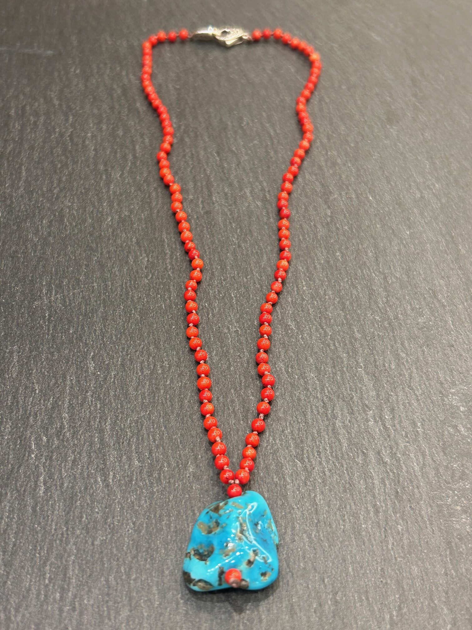 Ce bijou se compose de perles gorgone soigneusement sélectionnées. Elles apportent une texture unique et organique. De plus, leur teinte douce s’accorde facilement avec toutes vos tenues. Le pendentif en turquoise nugget ajoute une touche lumineuse et vibrante. Il capte la lumière et sublime votre port de tête.