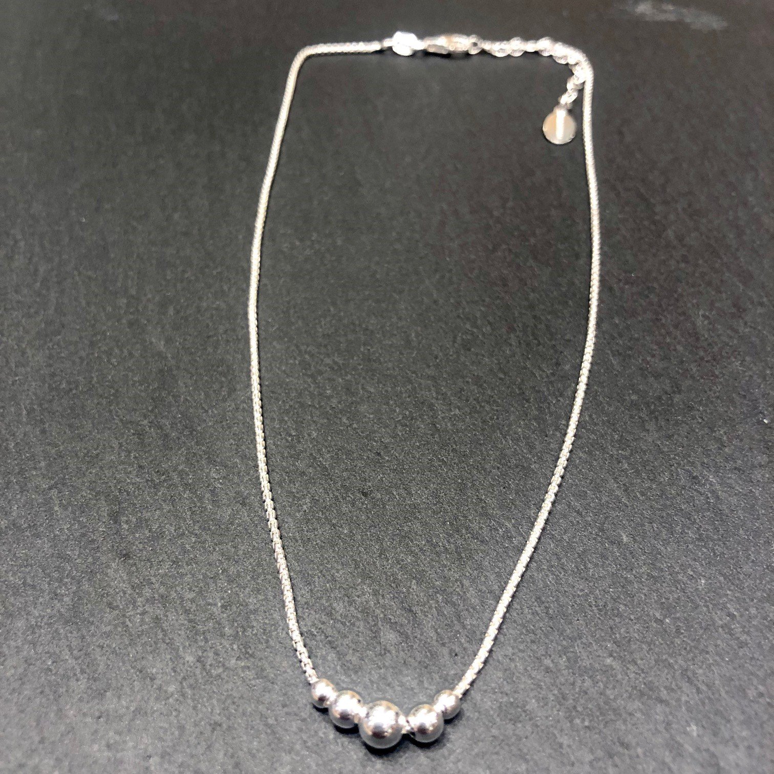 Collier court 1681 en argent maille fine décoré de 5 boules en argent. Chaine de rallonge 5,5 cm Dimension 37 cm