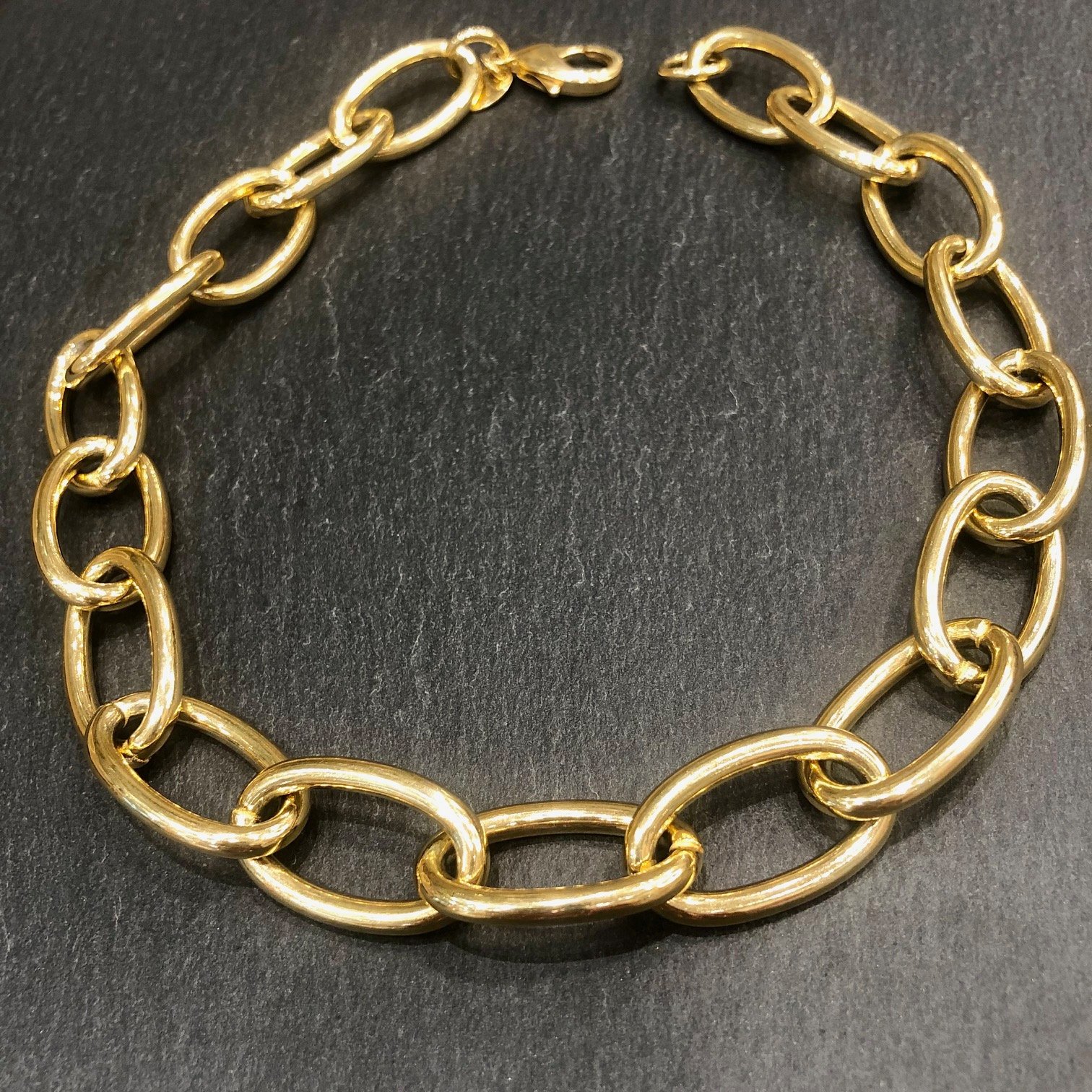 Collier 10399 court en laiton, en maille ovale face ronde.