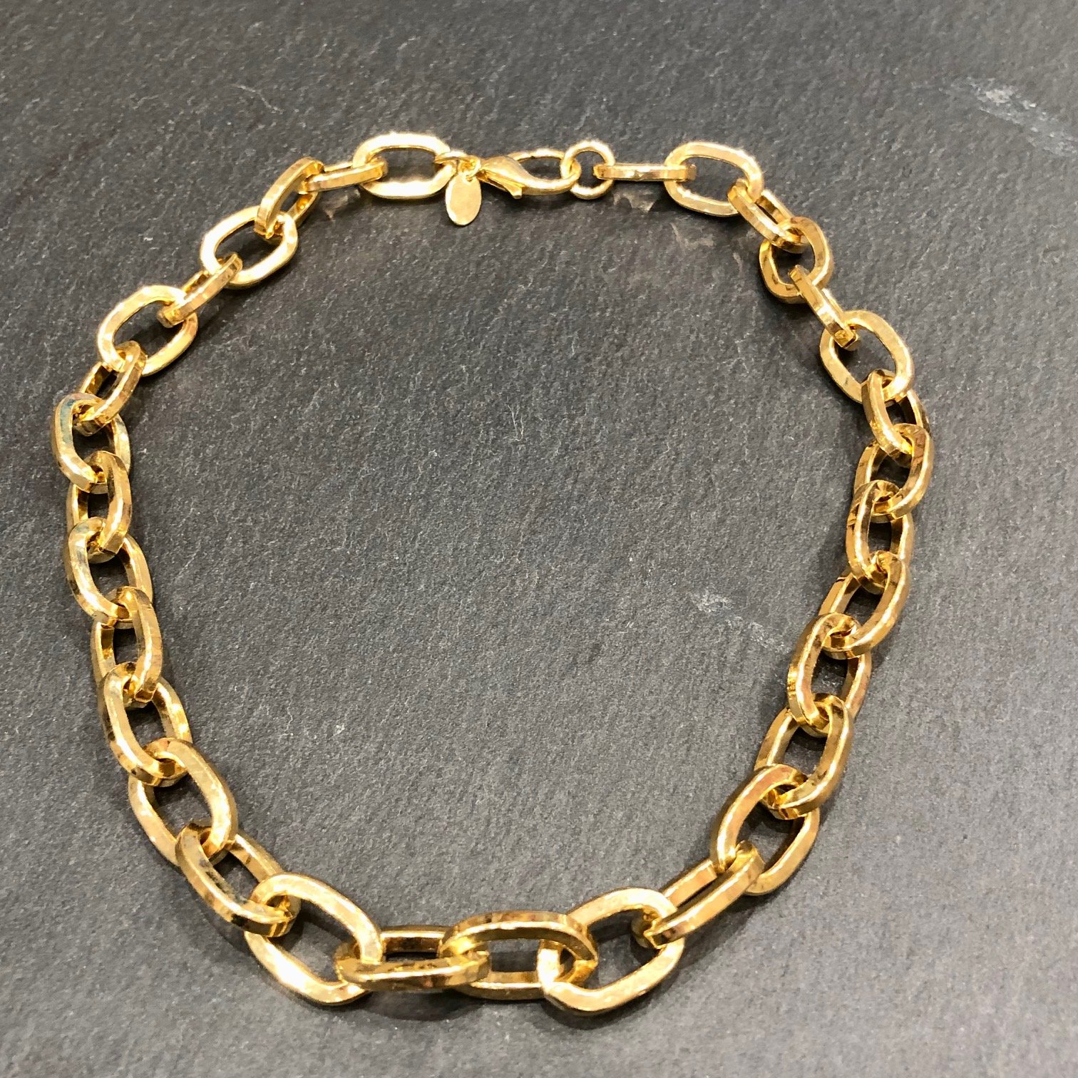 Collier 10619 court en argent 925 plaqué or, en maille ovale face carré.