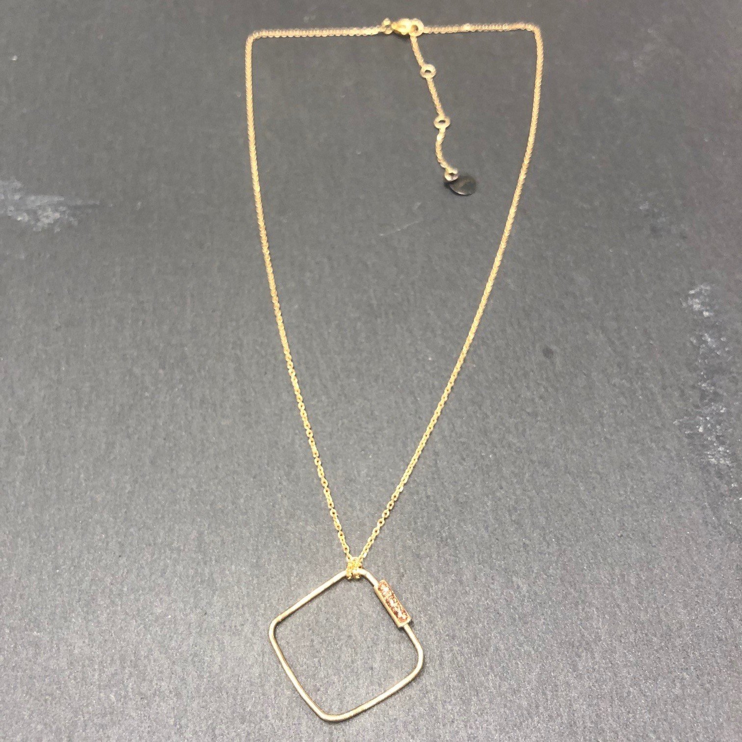 Collier court en argent 925 doré à l’or fin chaine fine ornée d’un carré en pendentif avec éclat d’un email diamenté .