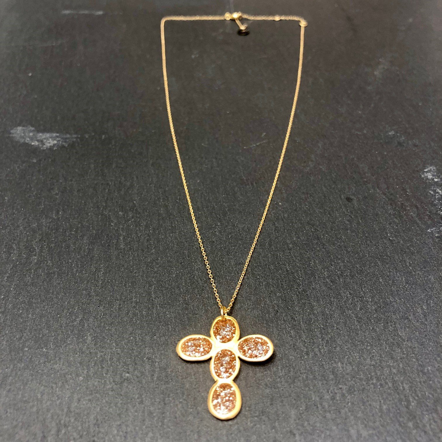 Collier court en argent 925 chaine fine dorée à l’or fin ornée d’un pendentif croix en émail diamanté.