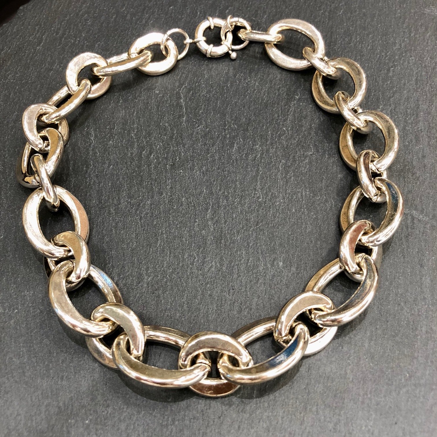 Collier court maille gourmette en métal argenté, composé de maillons ovales.