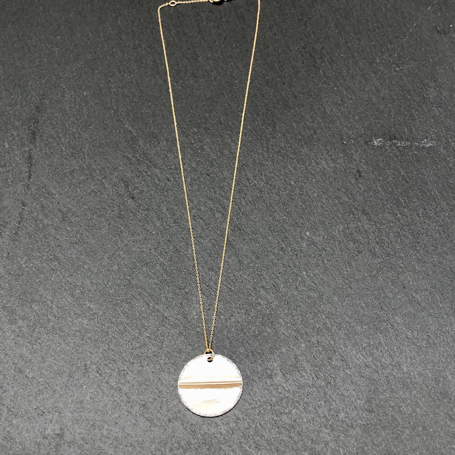 Collier court, collection Sublime, chaine fine en or ornée d’un médaillon en argent émaillé serti émail diamanté argent.