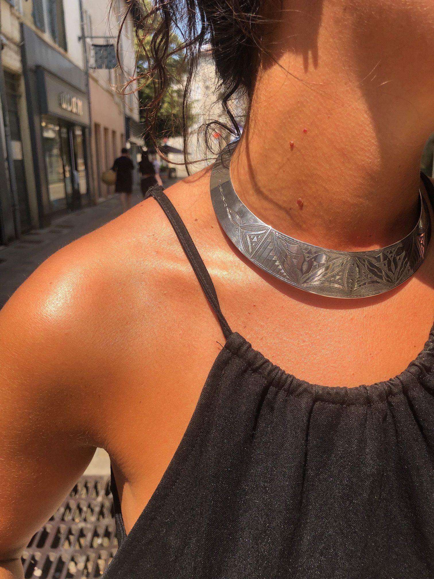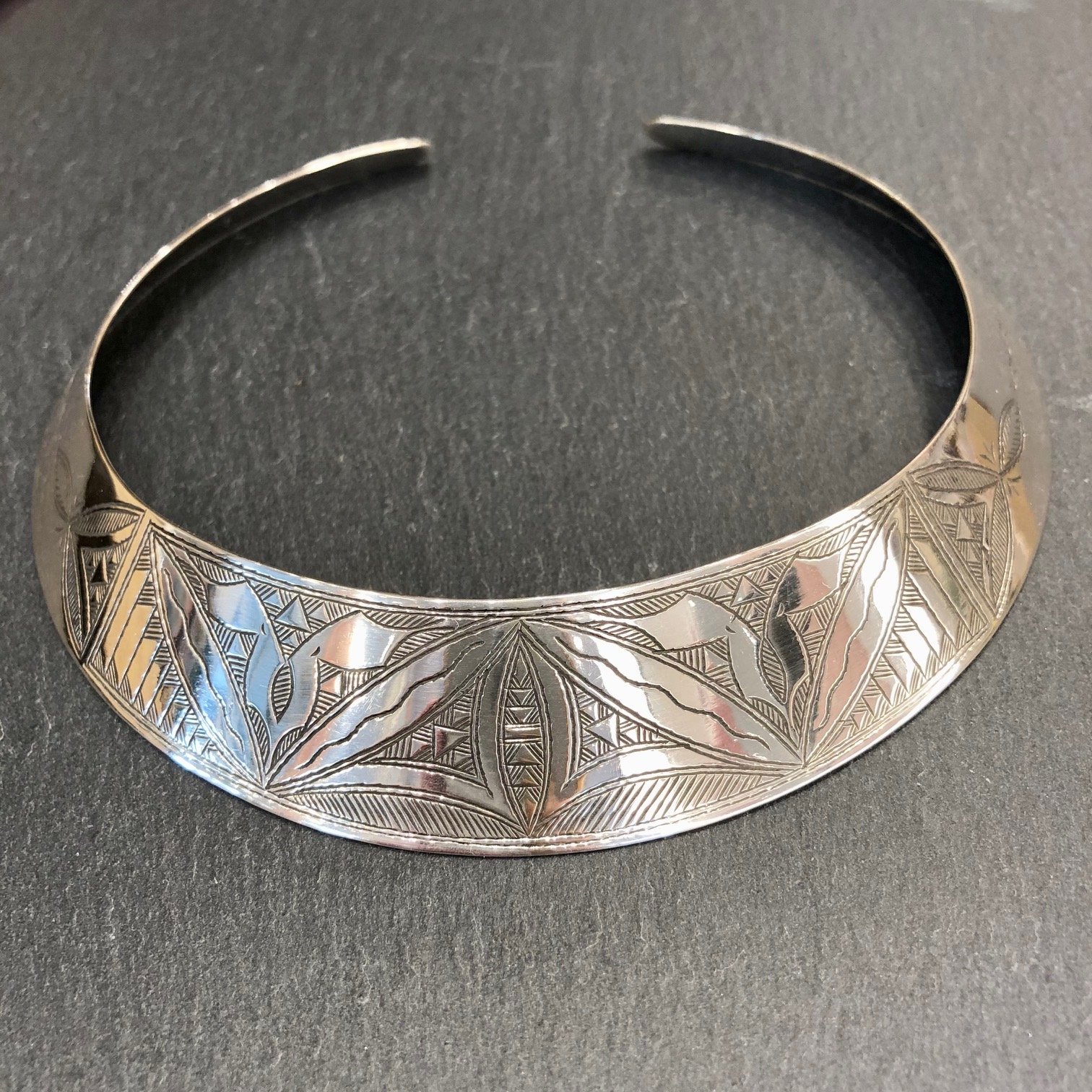 Collier TORQUE ras de cou rigide inspiration ethnique, finiment gravé, en argent gravé.