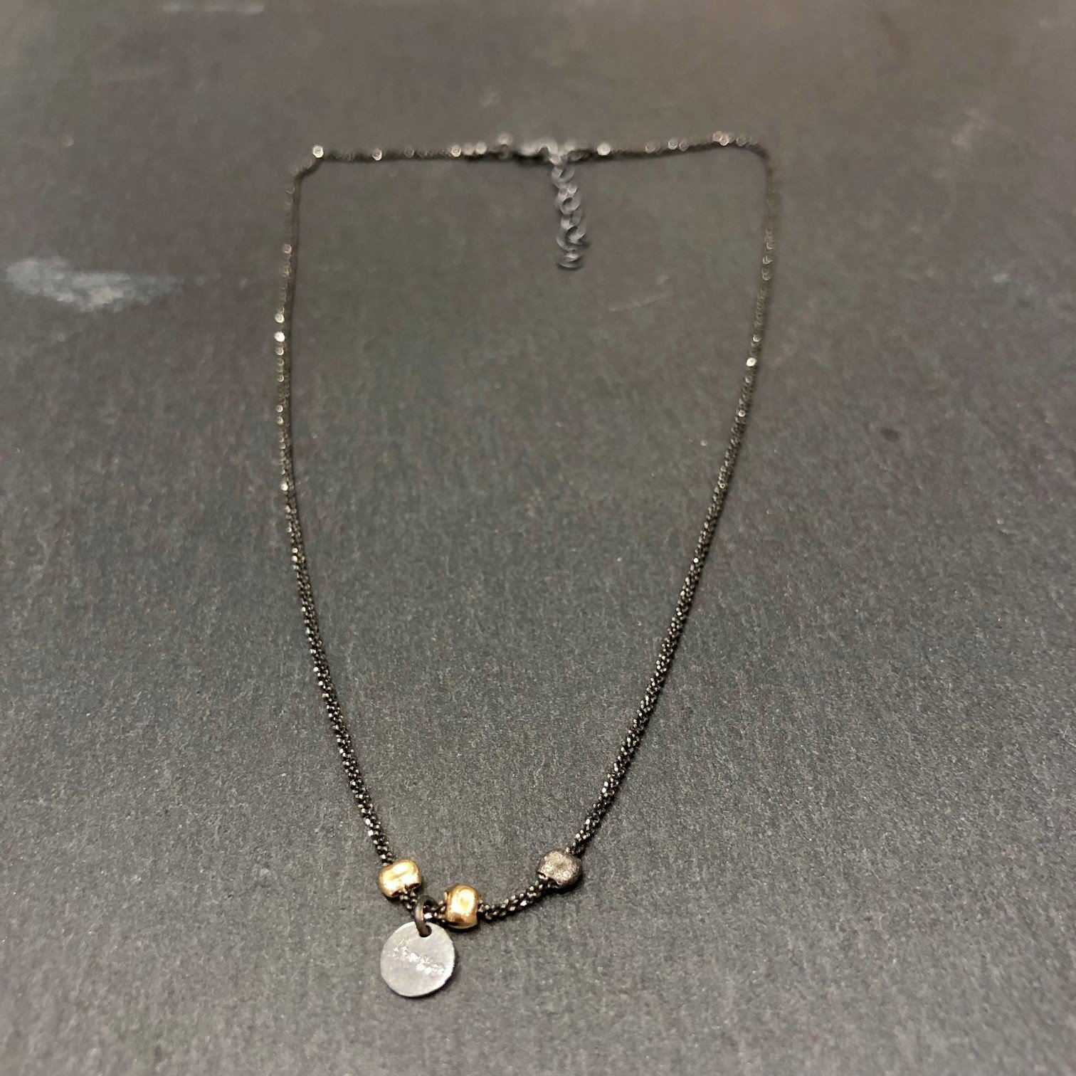 Collier court en argent 925 chaine fine noire diamantée ornée de 3 pépites écrasées .