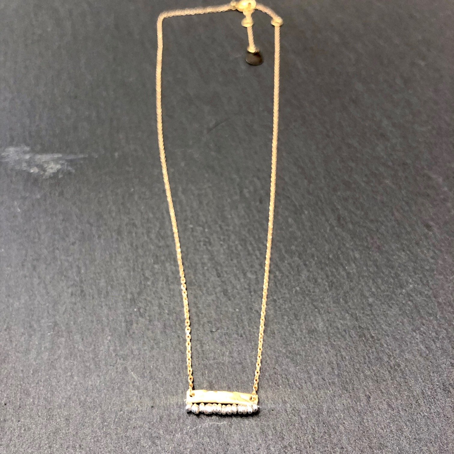Collier Shine, orné d’un pendentif barre horizontal doré et perles hématites, en argent 925 doré à l’or fin.