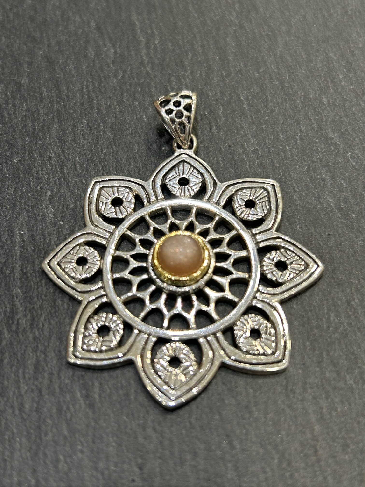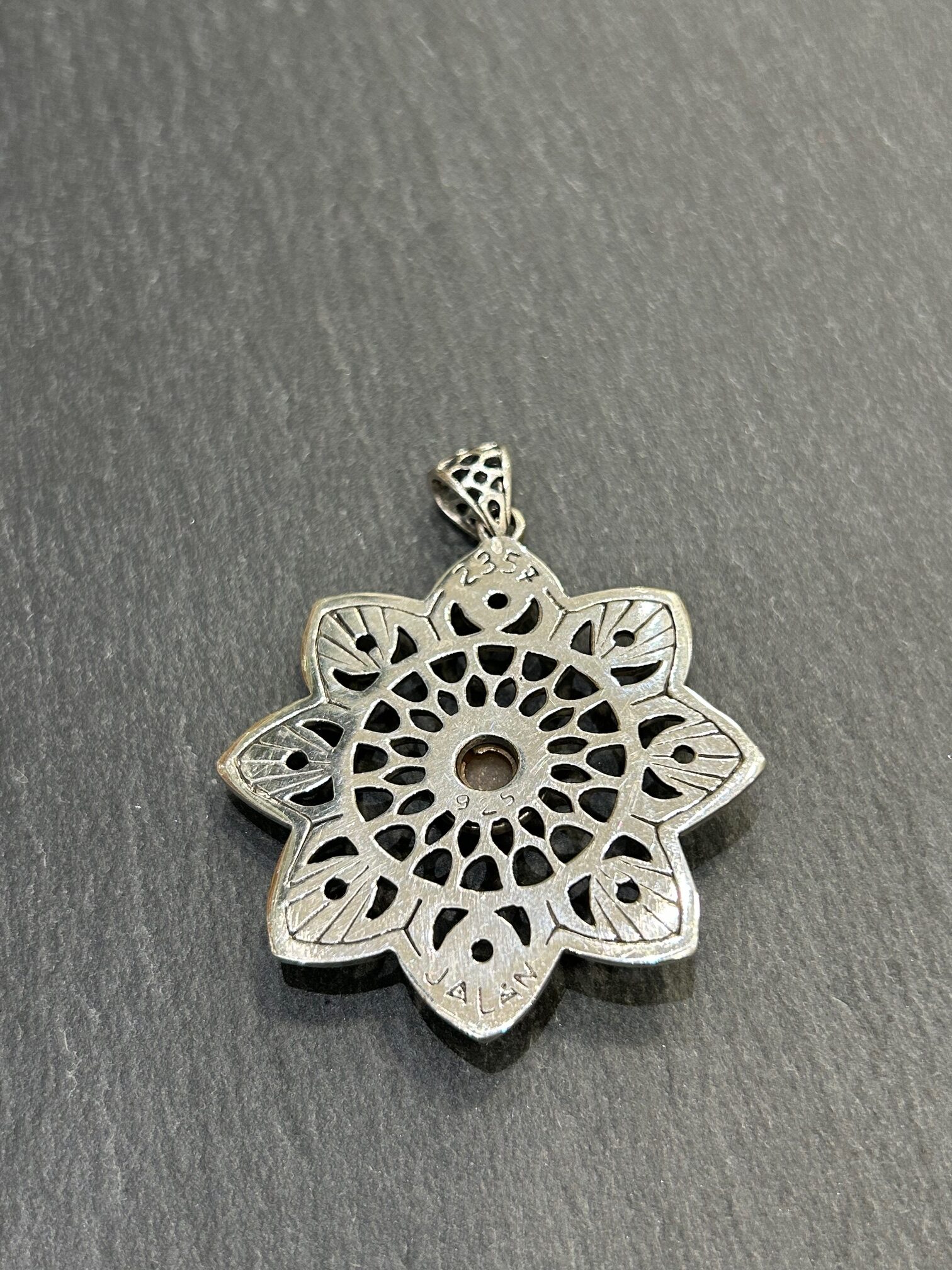 Le diamètre généreux de 4,5 cm donne au pendentif une vraie présence. Cependant, le design ajouré allège visuellement la pièce. Le bijou reste donc confortable à porter au quotidien. De plus, la rosace rappelle des motifs solaires et symboliques. Elle traverse les tendances sans jamais se démoder.